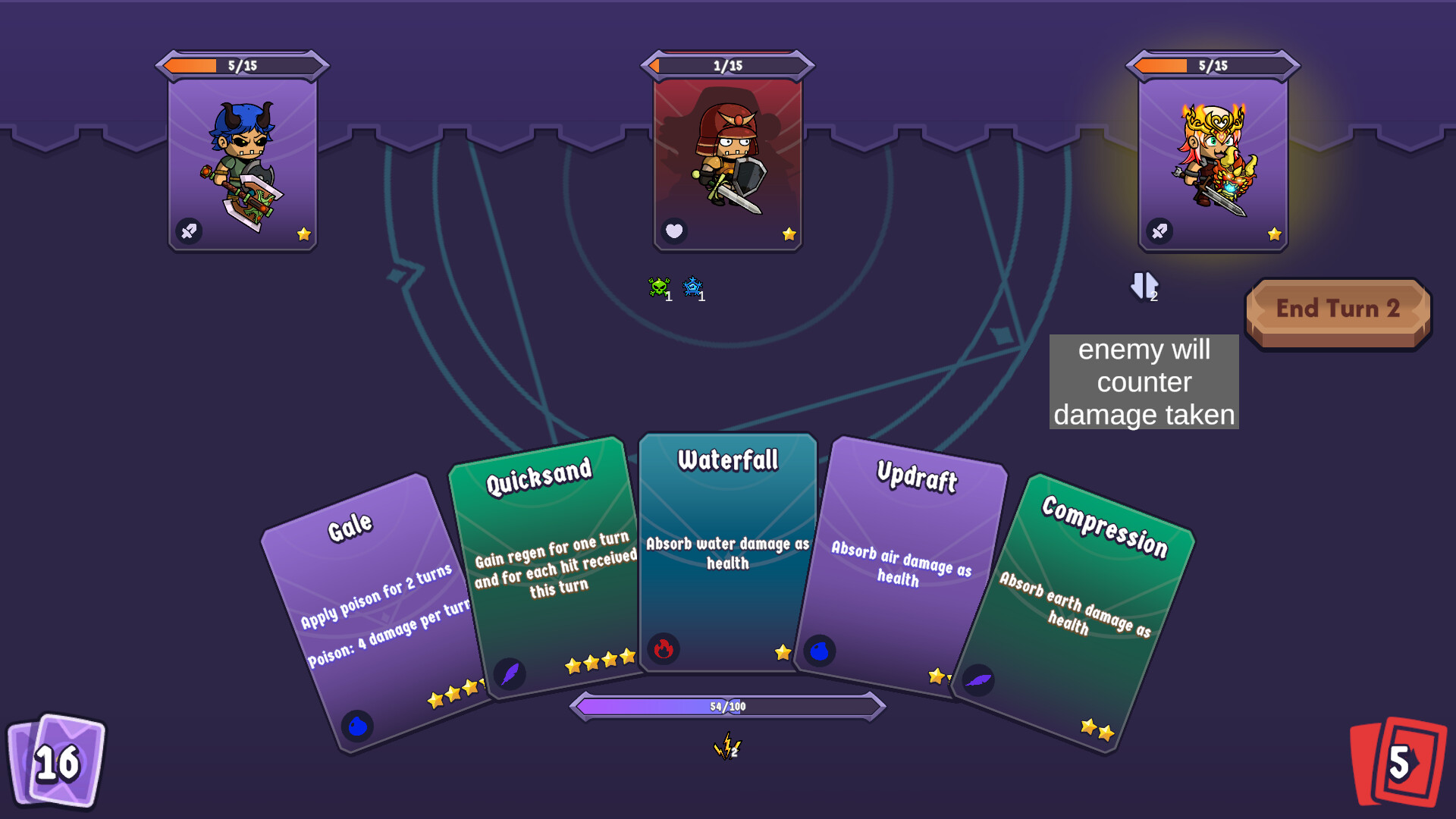 Cards aren’t just attacks; they shape your playstyle. Some reward aggressive combos, others focus on survival, healing, or disrupting your opponent’s strategy. Elemental interactions add another layer, encouraging you to think ahead and exploit weaknesses while protecting against your own. The result is a system that’s easy to pick up, but full of depth for players who want to master it.