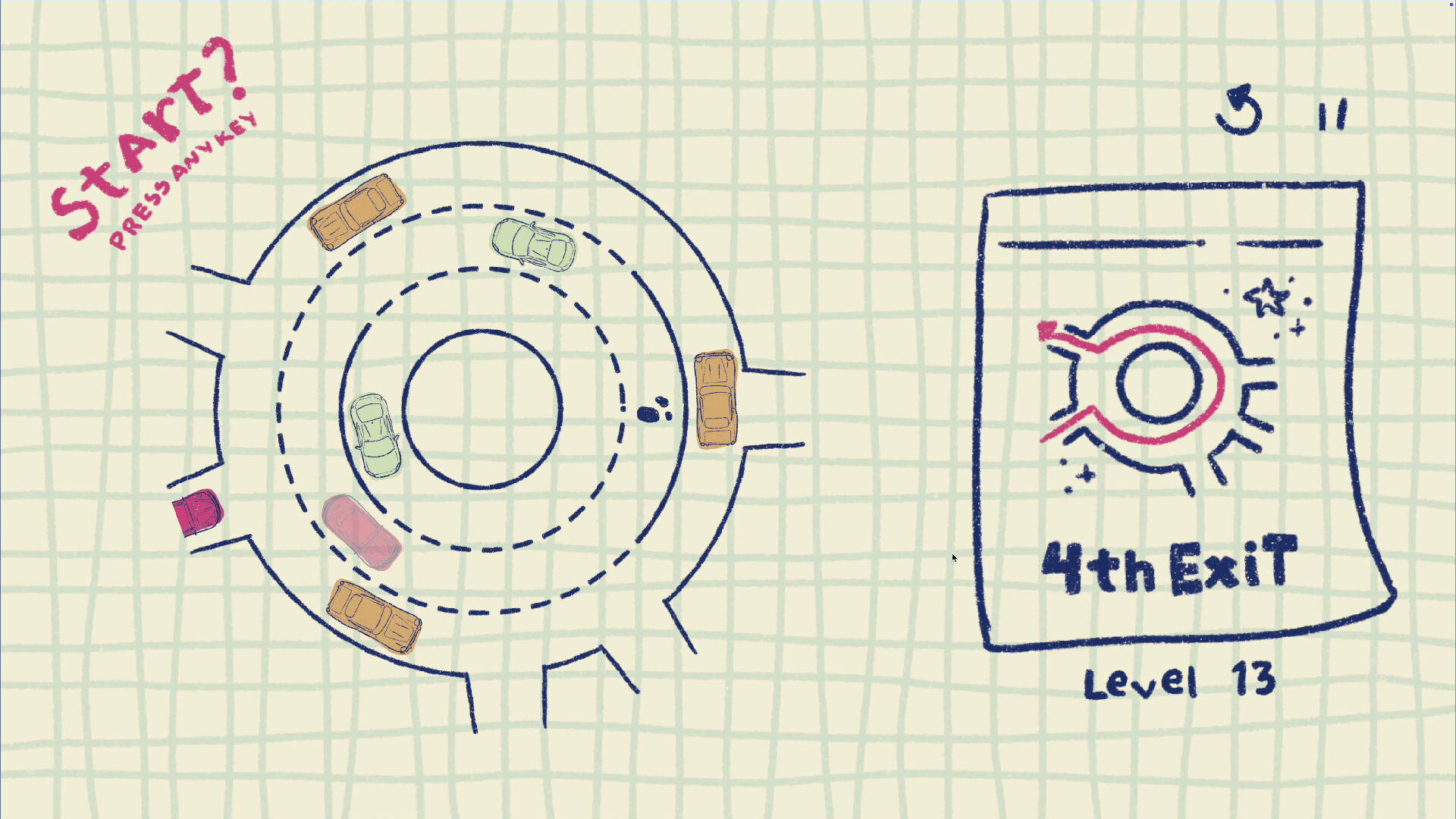 Vroomity Loops is a 2D puzzle game where the player needs to escape the roundabout without going in the wrong exit or causing an accident. As the player progresses the levels get more complex and new elements are introduced such as continuous lines to block movement, cars with three different speeds, traffic cones, and oil spins that causes the player to spin in the roundabout.