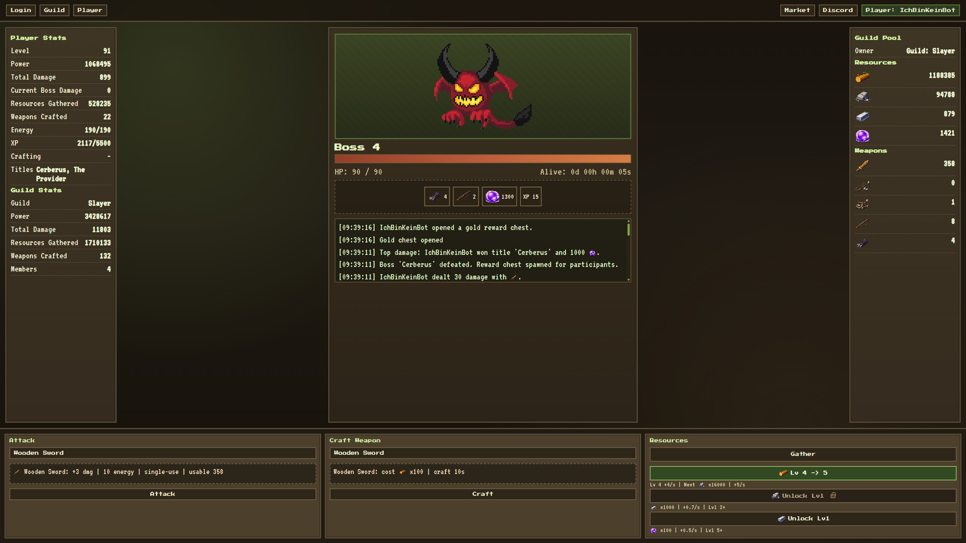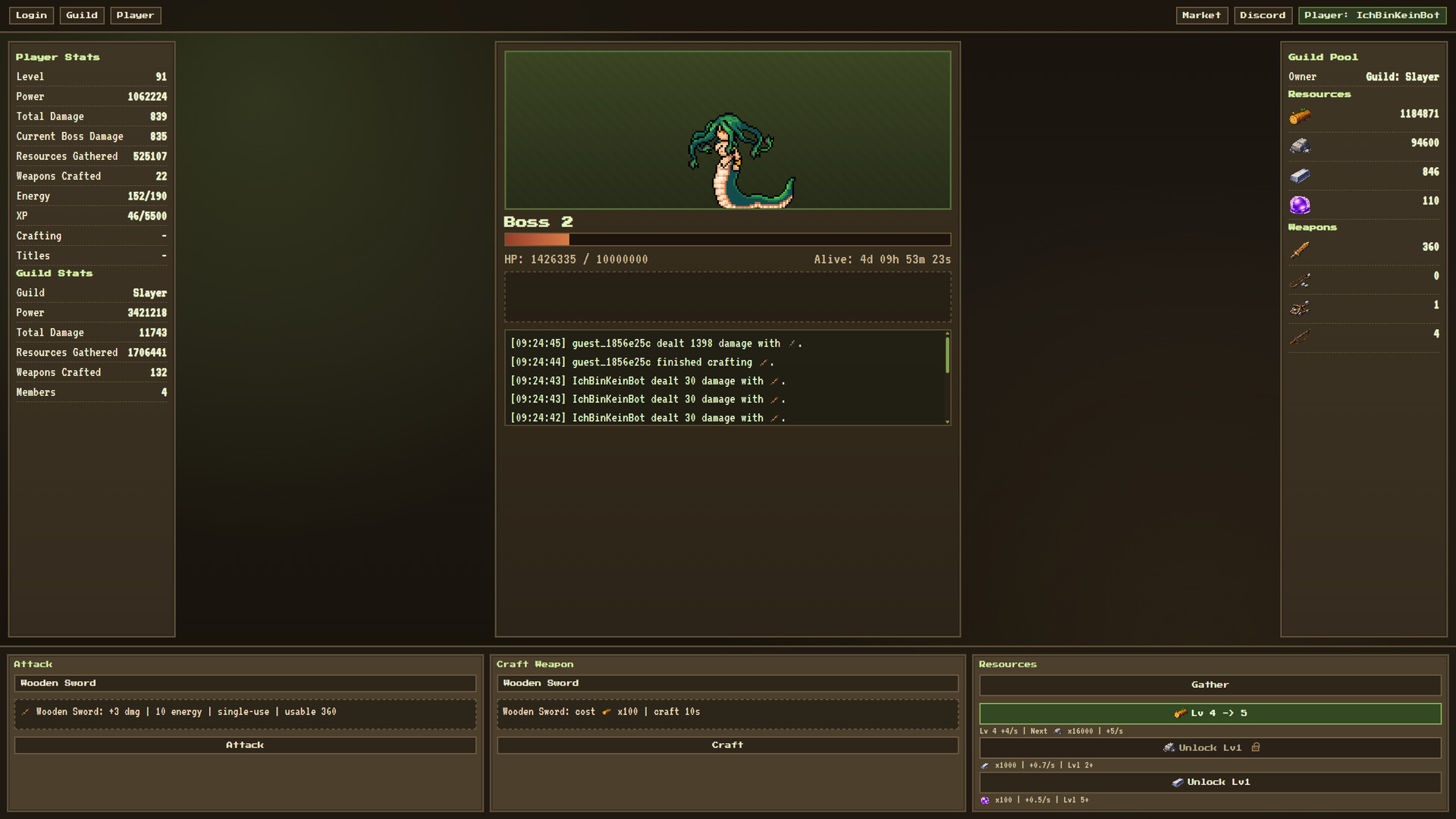 Enter a world where hundreds of players gather resources, craft powerful weapons, and unleash their strength against the Forest Bosses. Every hit counts and every upgrade matters!