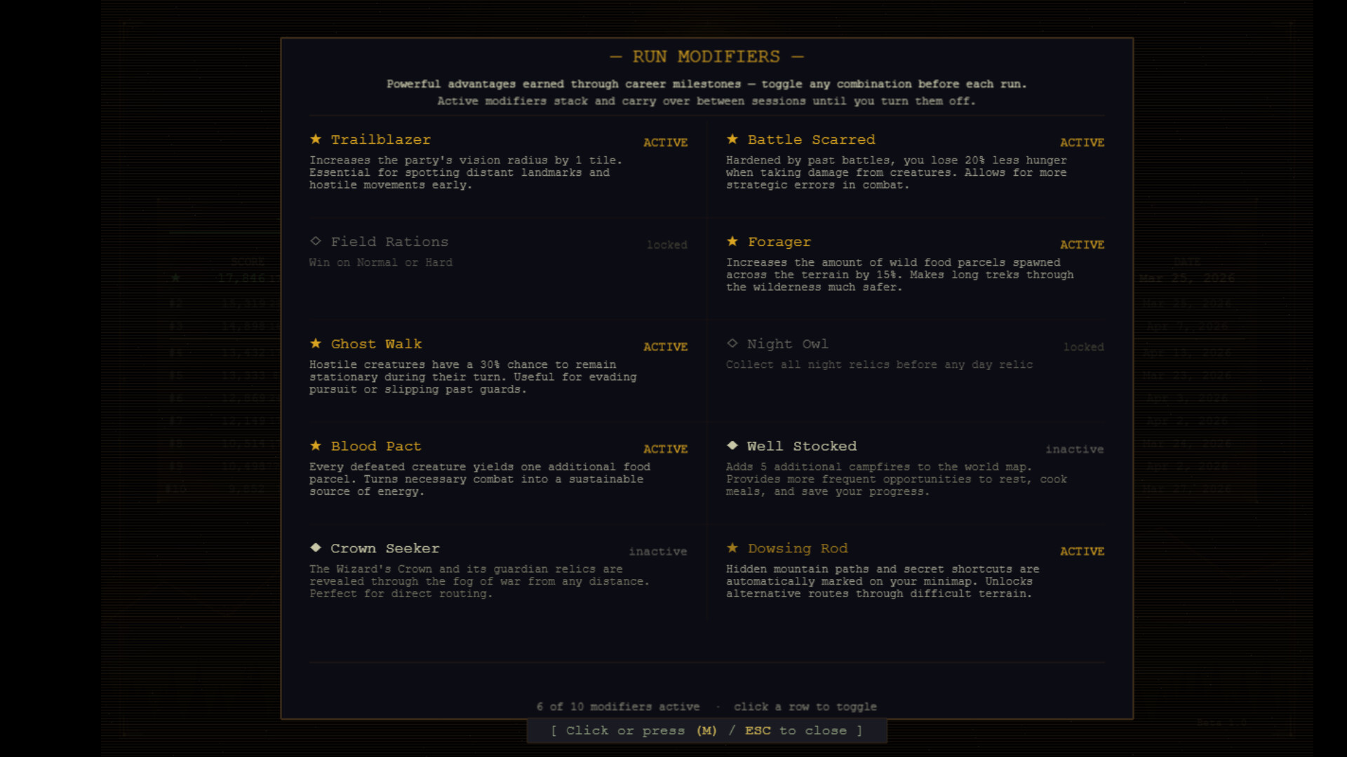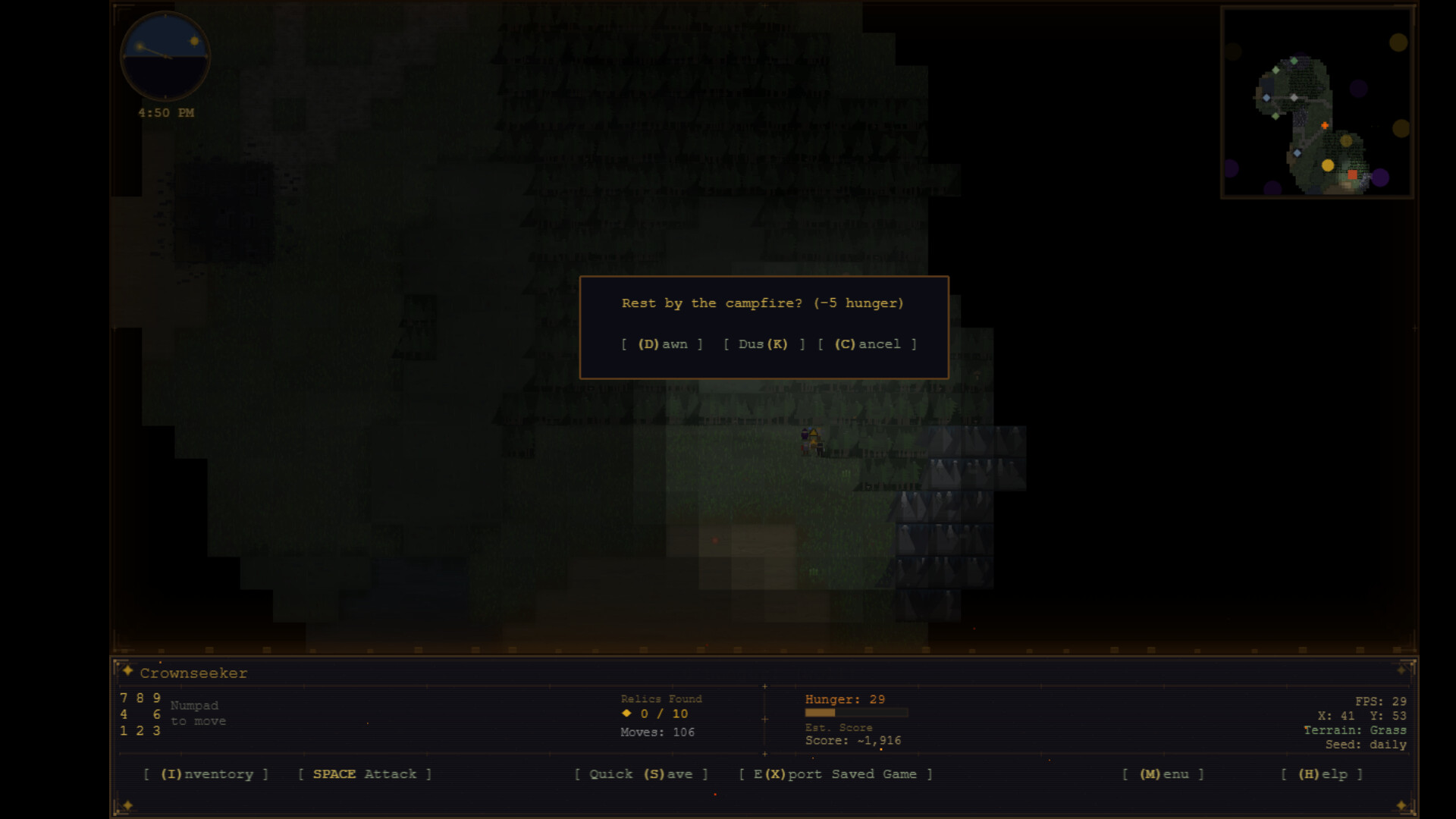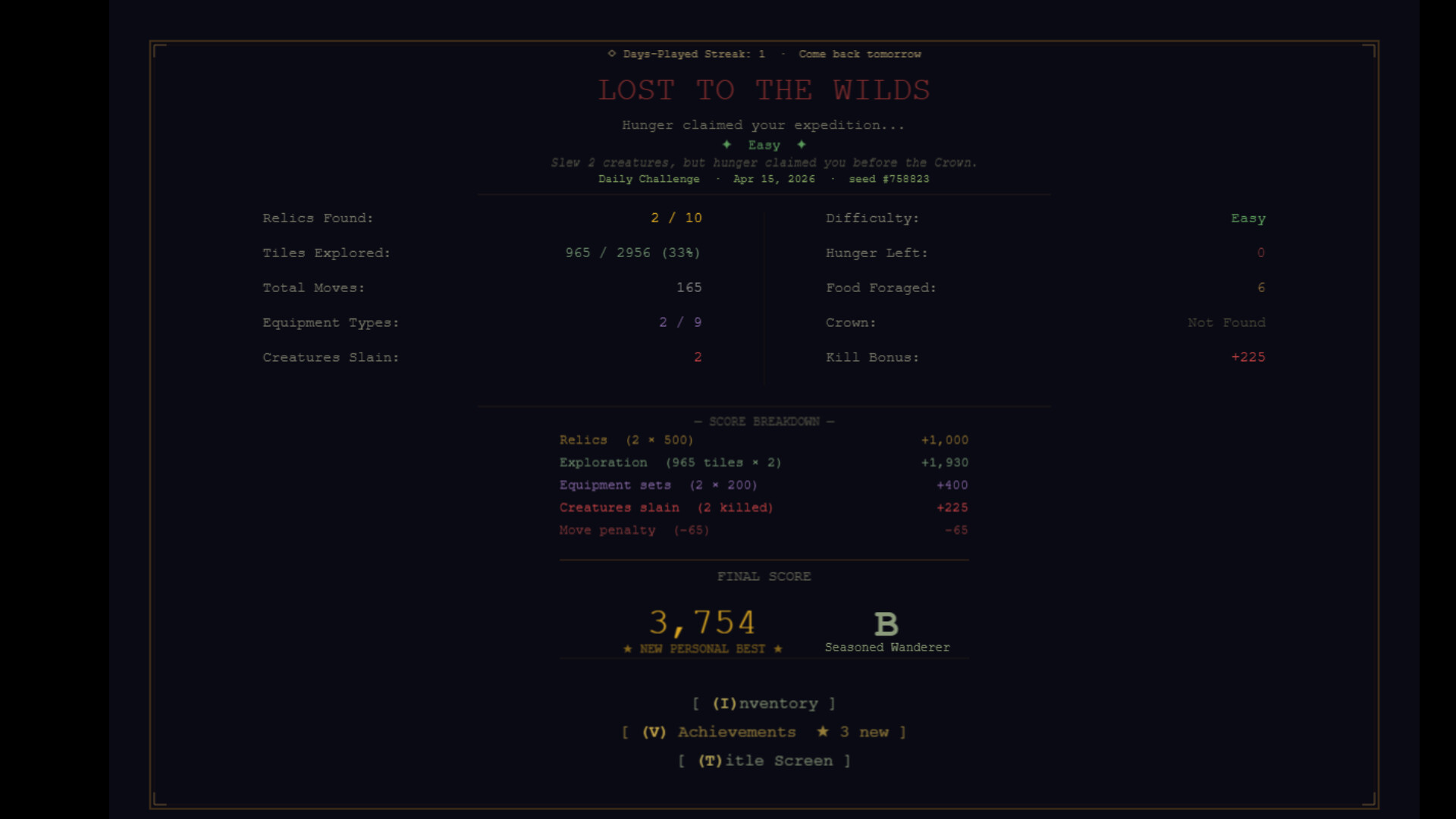 Compete for the Crown Finish a run and you're scored and graded — Legendary Relic Hunter down to mere Wanderer. Seed-based leaderboards let you compete on the same map as every other player. Daily seeds, random seeds, or custom seeds — your choice.