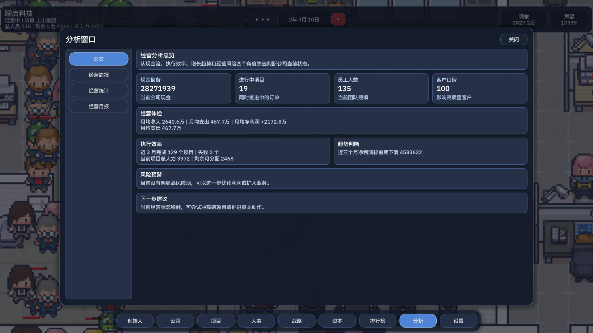 초기에는 생존을 위해 소규모 프로젝트만을 수주할 수 있겠지만, 점차 팀을 확장하고 더 높은 가치의 프로젝트를 맡게 될 것입니다. 나아가 투자를 유치하고 자본 운용에 뛰어들며, 최종적으로는 기업 공개(IPO)까지 추진하게 됩니다.