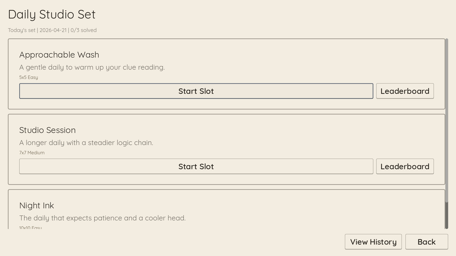 - Daily and weekly competition boards with stable seeds and leaderboard tracking.