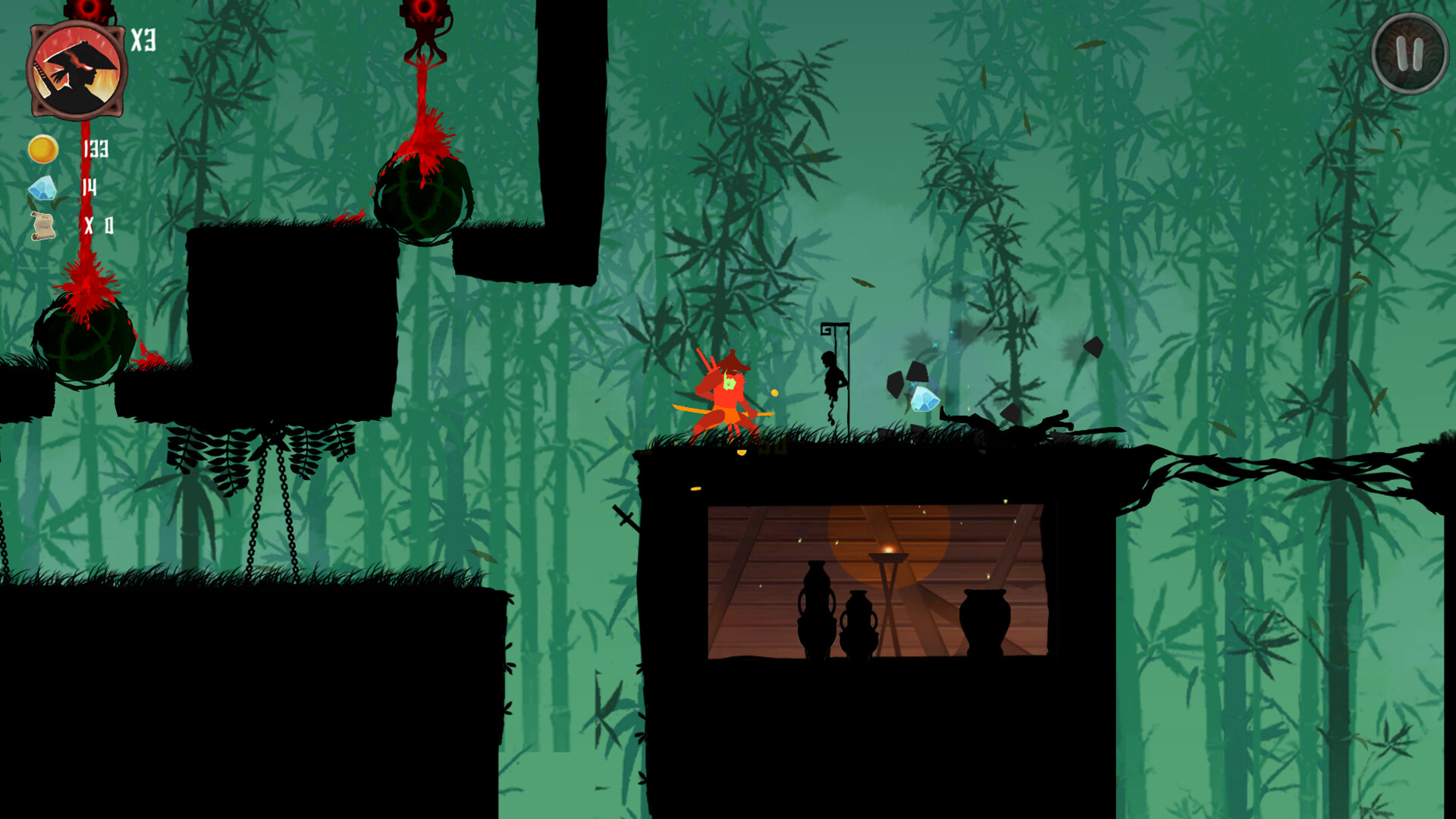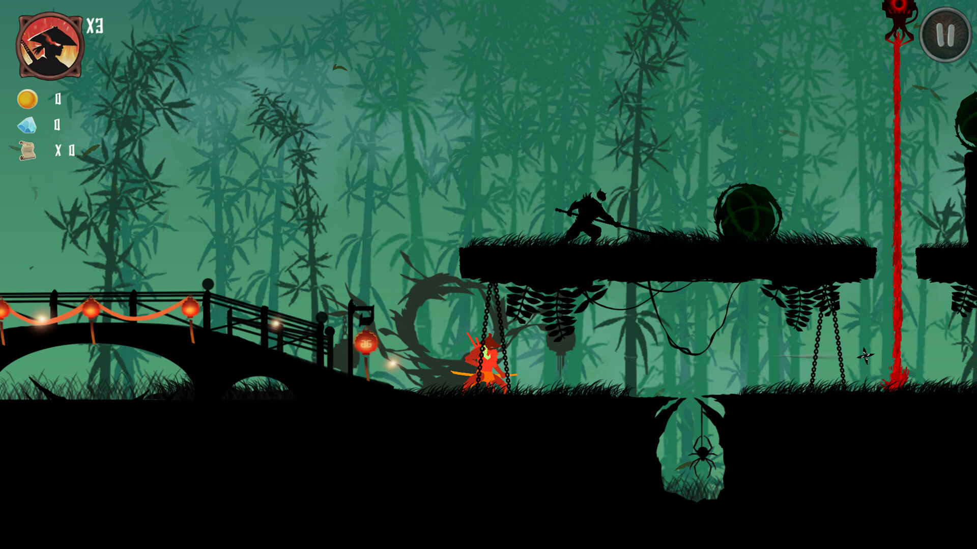 You transform into a ninja and can use shurikens and the Flash Step Slash to attack enemies on the map. Camouflage allows you to temporarily evade enemy pursuit, but your movement speed will be greatly reduced. During the map mission, you will encounter many patrolling enemies, and you need to either kill them or avoid them. There are also many traps and mechanisms on the map, and you need to avoid and bypass them. Each map has three scrolls. Try to get all of them, as this is the key to unlocking the next chapter's map (even if you don't get all of them, getting at least 30 scrolls per chapter can also unlock the next chapter).