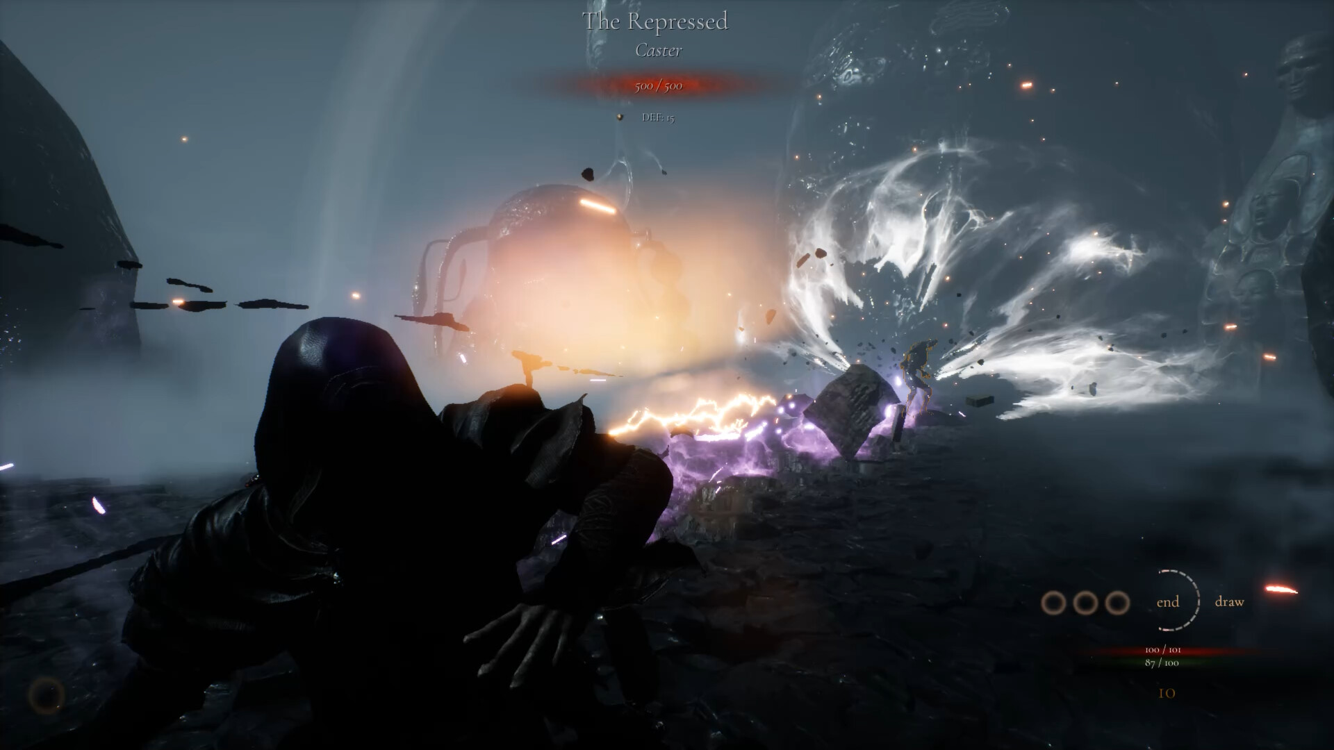 Inside, time pools. Technology fails. The relics of fallen Gods, fragments of their final moments, the last power they wielded before they died - scatter across killing floors and impossible geometry.
