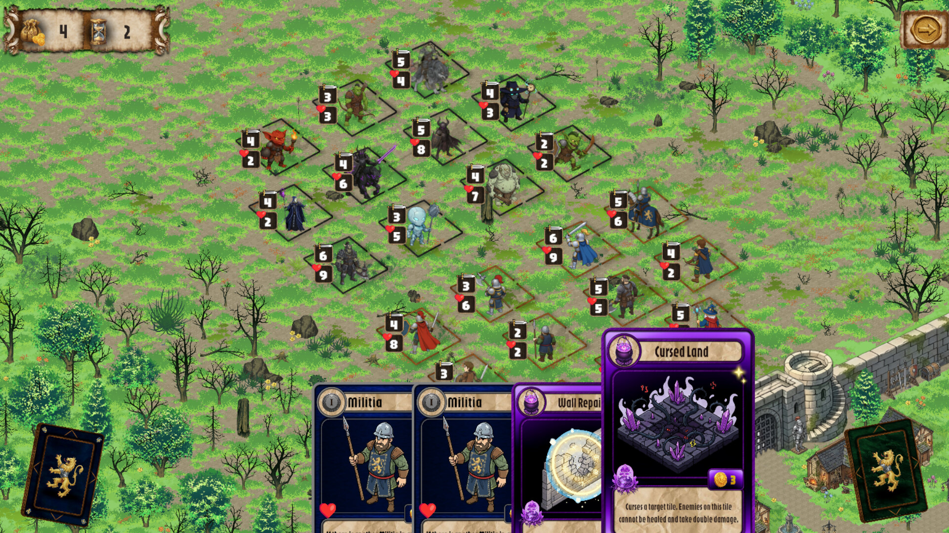 The General (Defense Phase): When the horn sounds, command your troops on the battlefield. Use Tactical Points (TP) to command units, cast devastating spells, and outmaneuver the relentless hordes.
