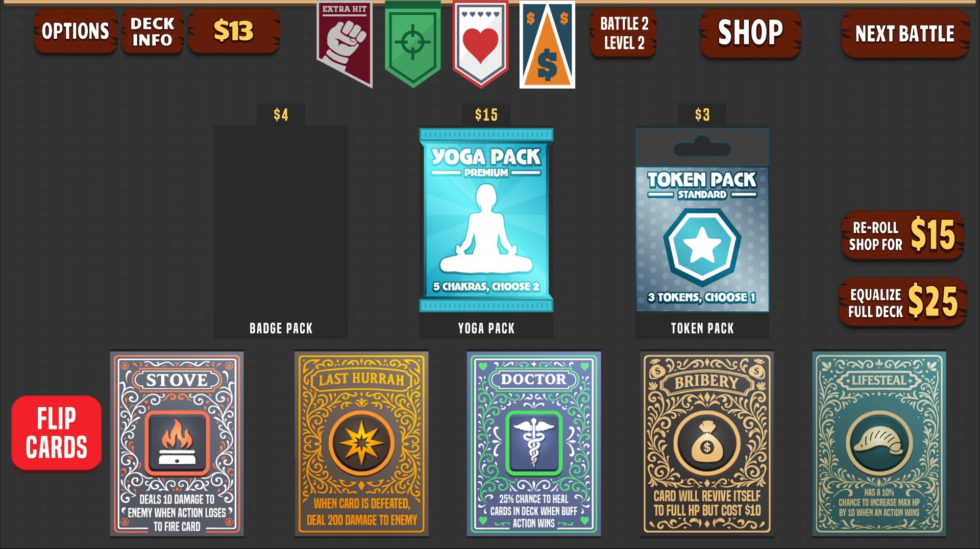 Each card in your deck represents a fighter and contributes to your team’s strength in battle. As you progress, you will earn rewards and upgrades that allow you to shape your build in different directions. Strengthen your entire deck with Banners, specialize individual cards with powerful Badges, and push your strategy further with Chakras and Tokens. Choosing the right upgrades is the key to surviving as enemies grow stronger with every stage.