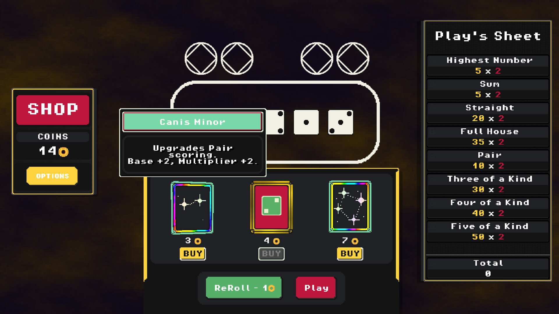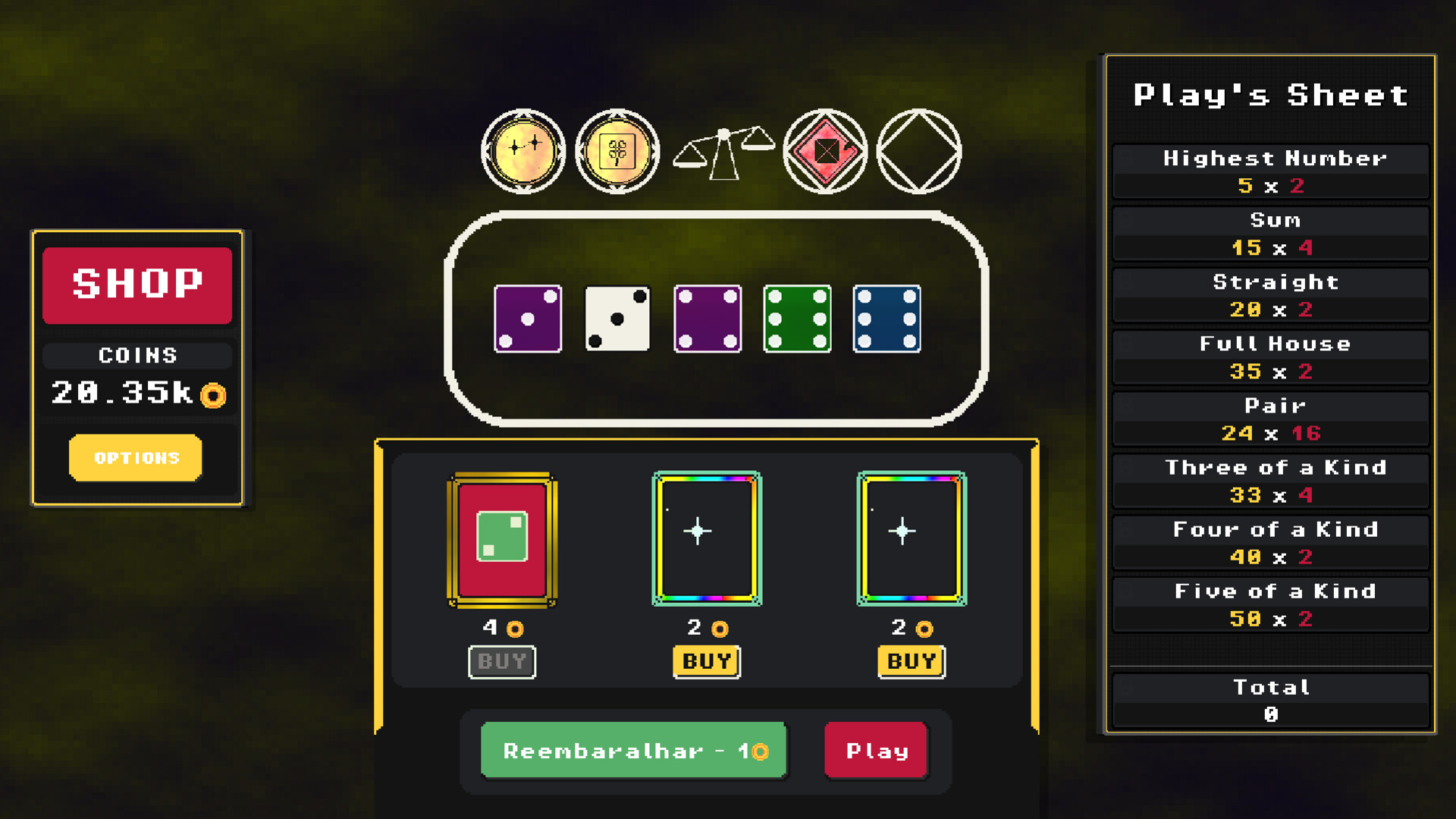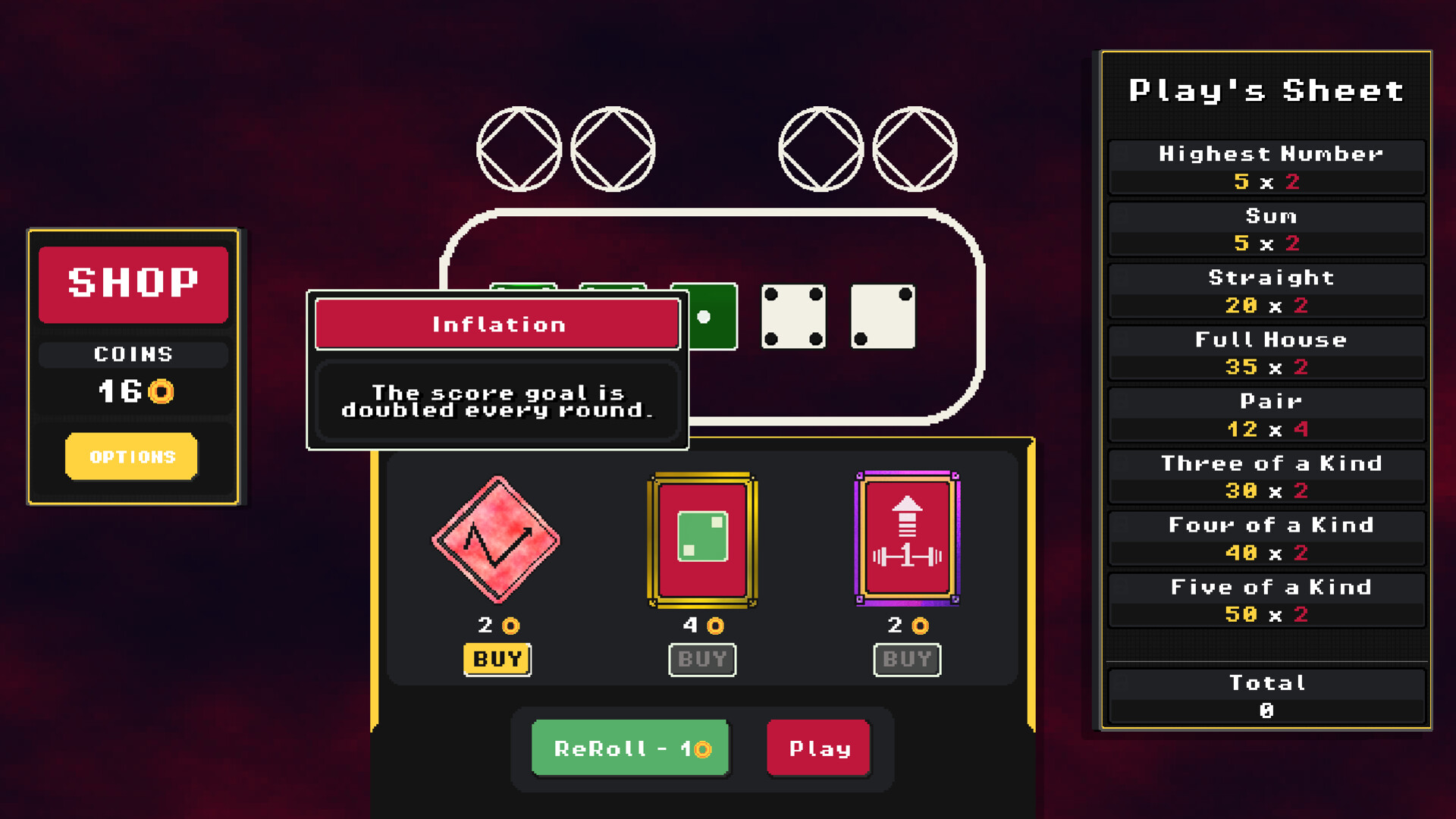 Between rounds, visit the shop to evolve your strategy. Upgrade your dice, refine your plays and maybe discover something beyond what you expected...