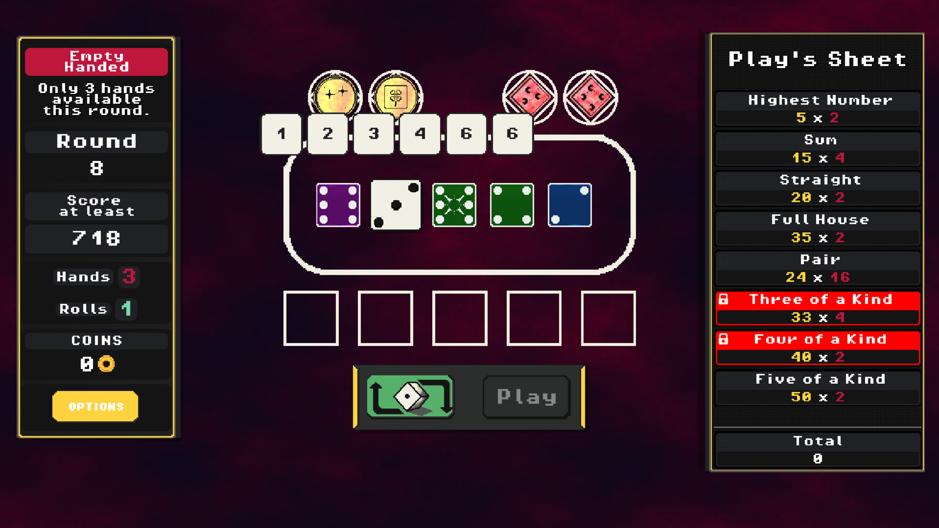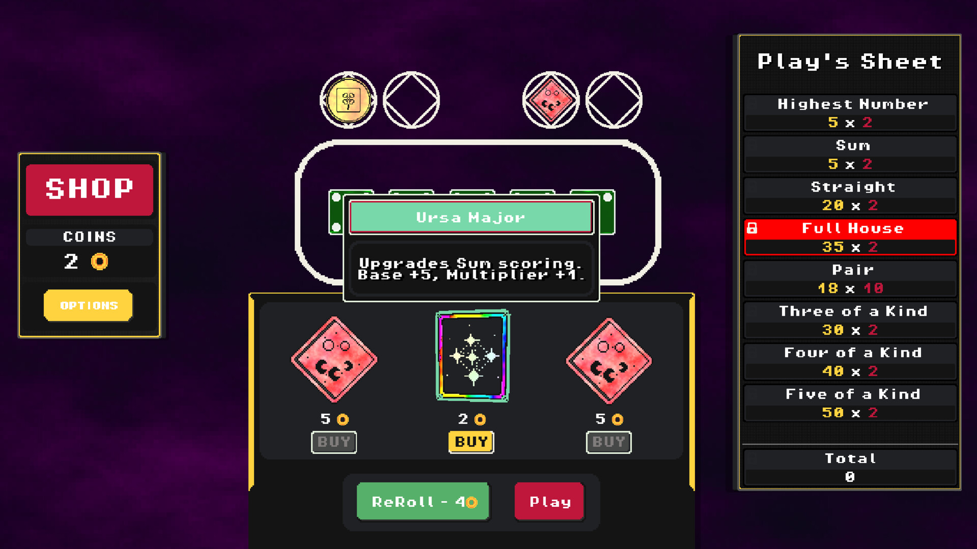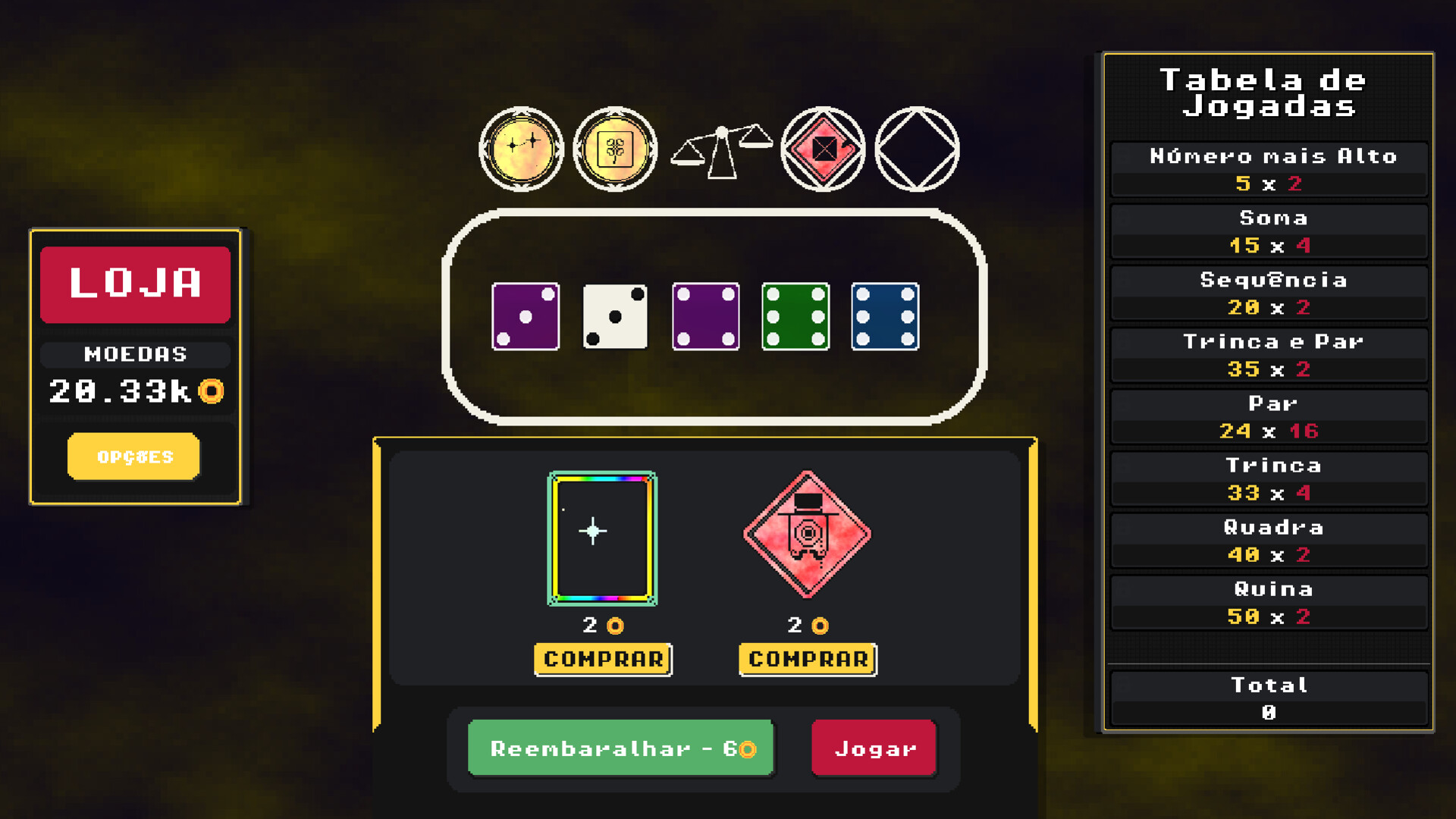 Between rounds, visit the shop to evolve your strategy. Upgrade your dice, refine your plays and maybe discover something beyond what you expected...