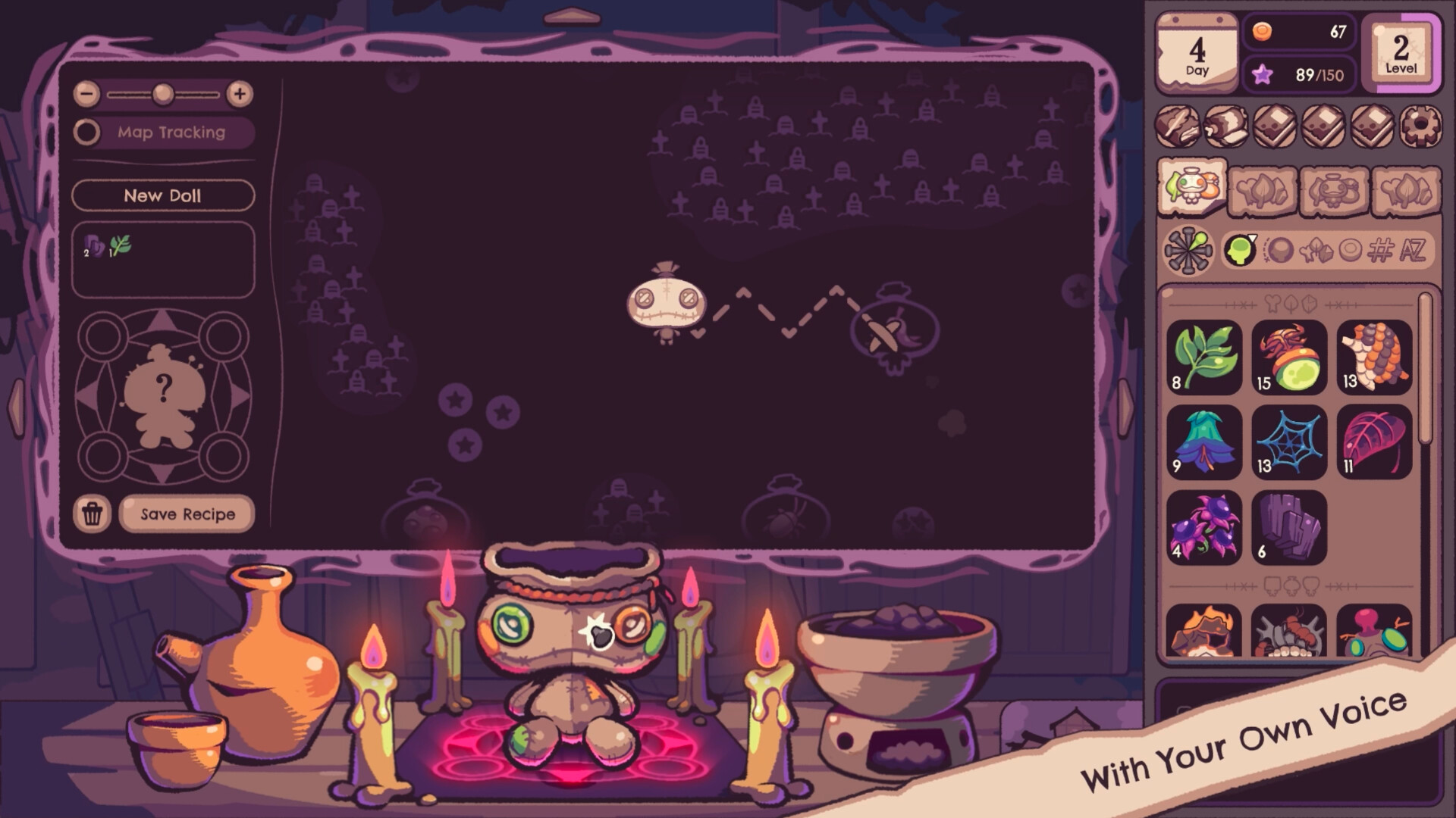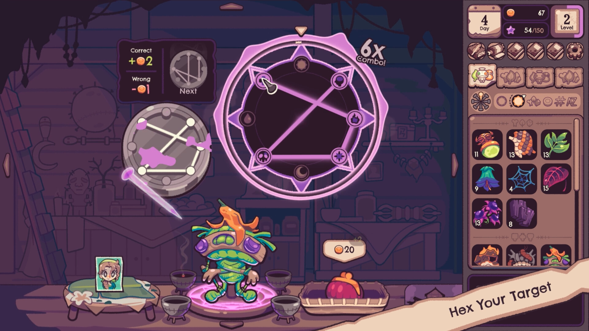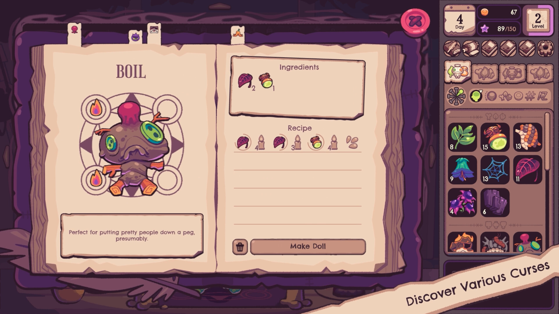 Manage your daily routine as a shaman, tend your garden, gather craft materials, and experiment with different combinations to create powerful rituals. Each customer brings their own problems, and through your craft, you can twist their fate, stir relationships, and set events into motion across the village.