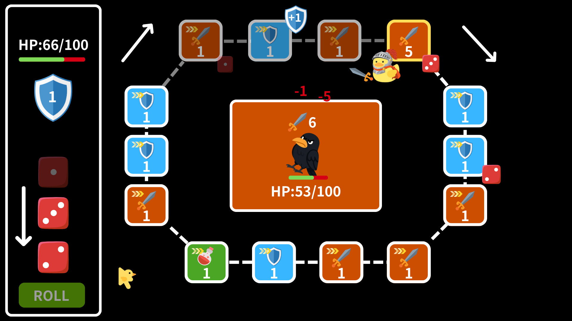 "Loop Duck Battles" is an engine-building battle game that combines Monopoly-style gameplay with roguelike elements.