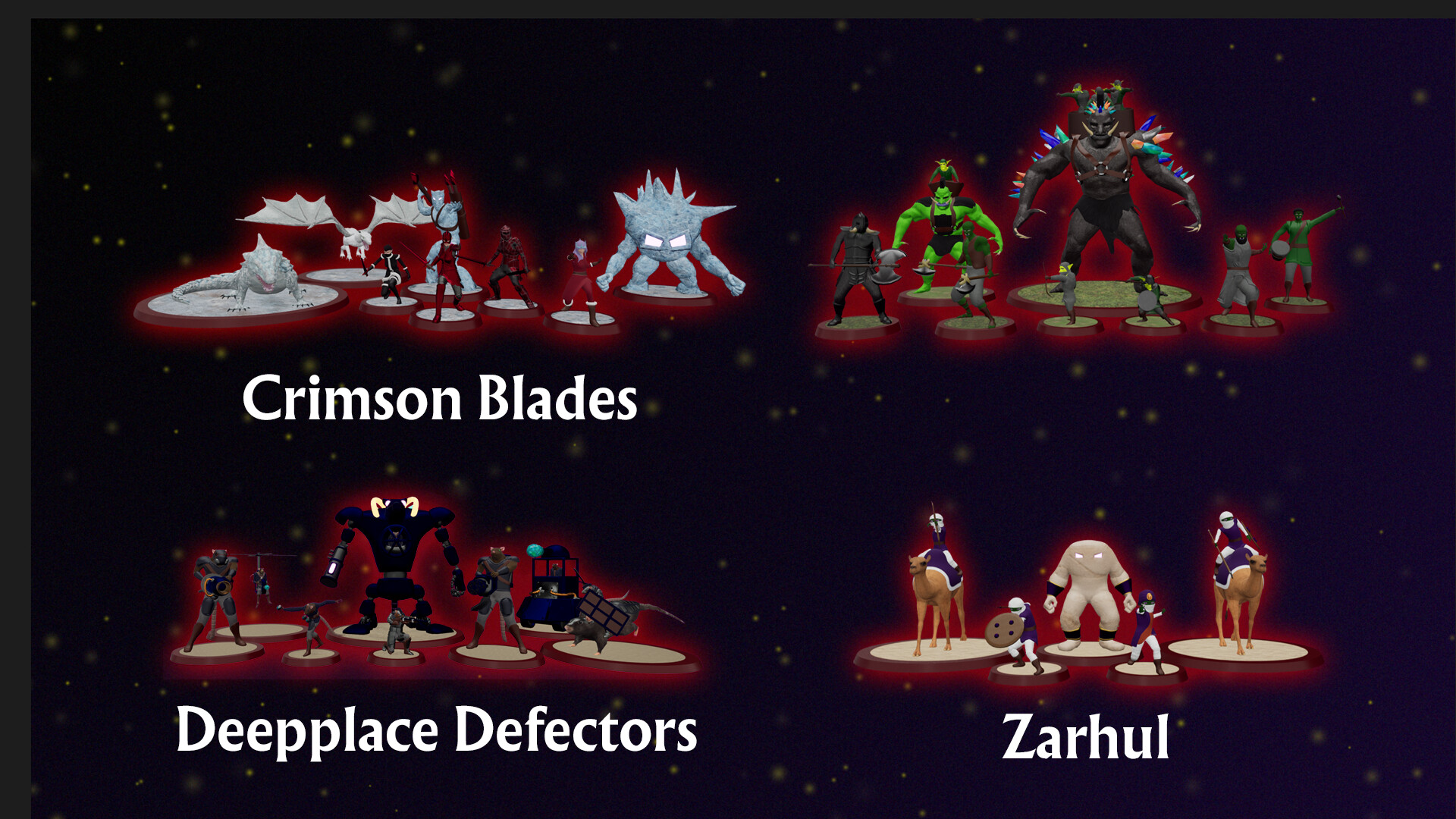 Variety of Opponents and Locales: Fight against eight enemy factions: Crimson Blades, Deepplace Defectors, Undead, Summer Court Vampires, Shadows, Savage Greenskins, Zarhul Raiders, Clan of Venom Arachnidar, and an assortment of factionless enemies. Maps are composed of biomes, each with their own unique challenges and enemies.