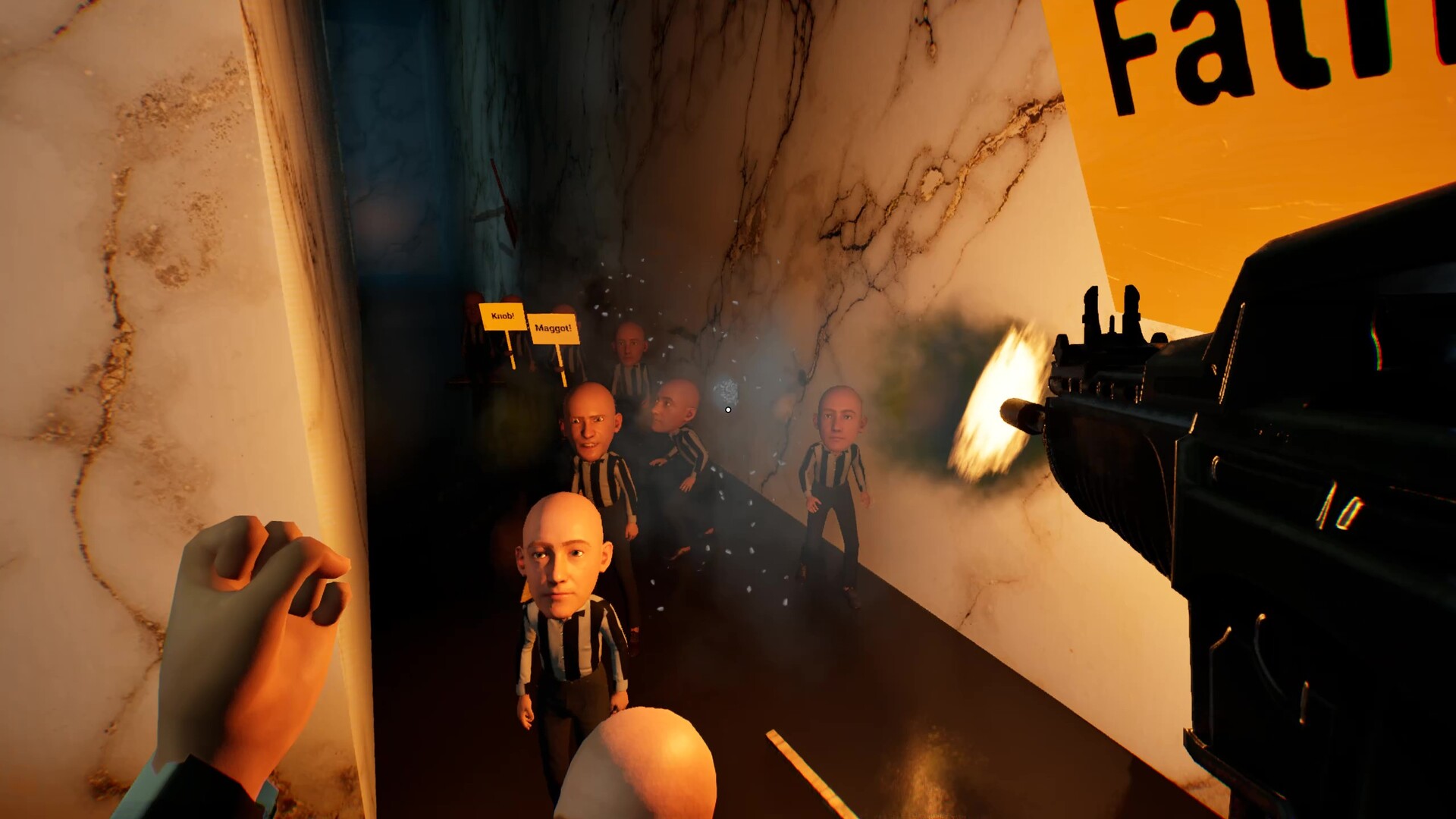 The world of Bahgonia is divided into levels you must escape from. In each level, the Meyers will try to stop you by relentlessly chasing you and tearing you down with insults. Use the abilities you acquire throughout the game to deal with them: push them, drag them, attack them, shoot them, outsmart them, send them flying, and more. All of this to activate the level’s exit portal. Each level is a new challenge where you’ll need to not only solve it but also put your skills to the test.