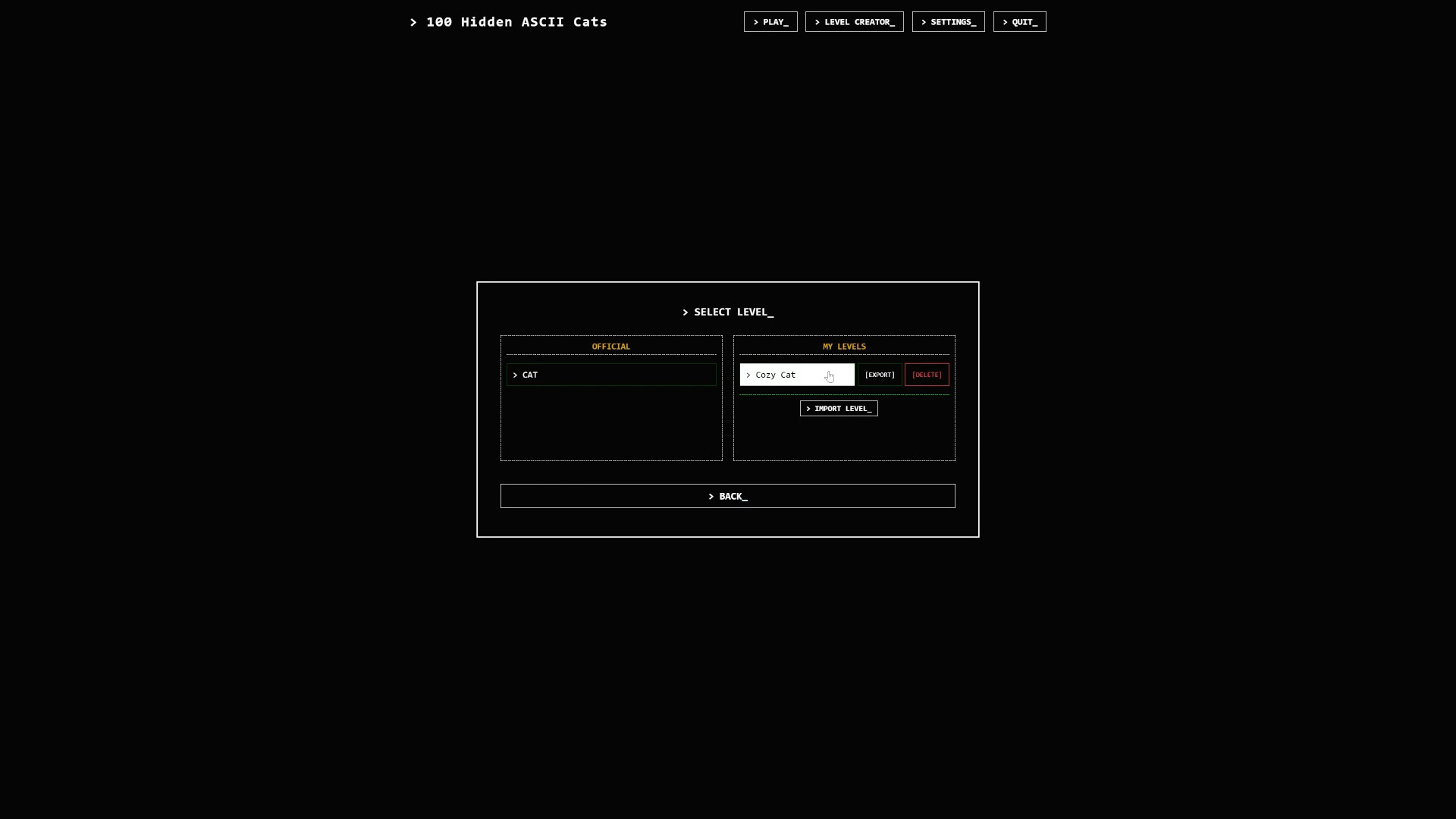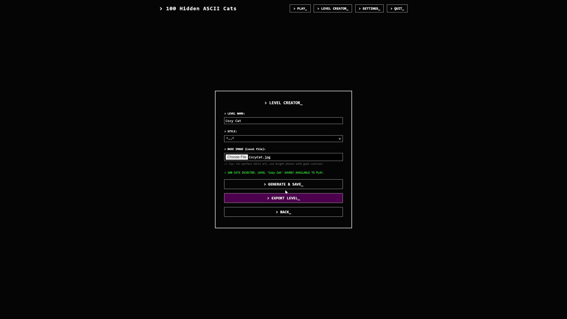 내장 레벨 에디터: 나만의 ASCII 맵을 만들고 내보내 친구들과 공유