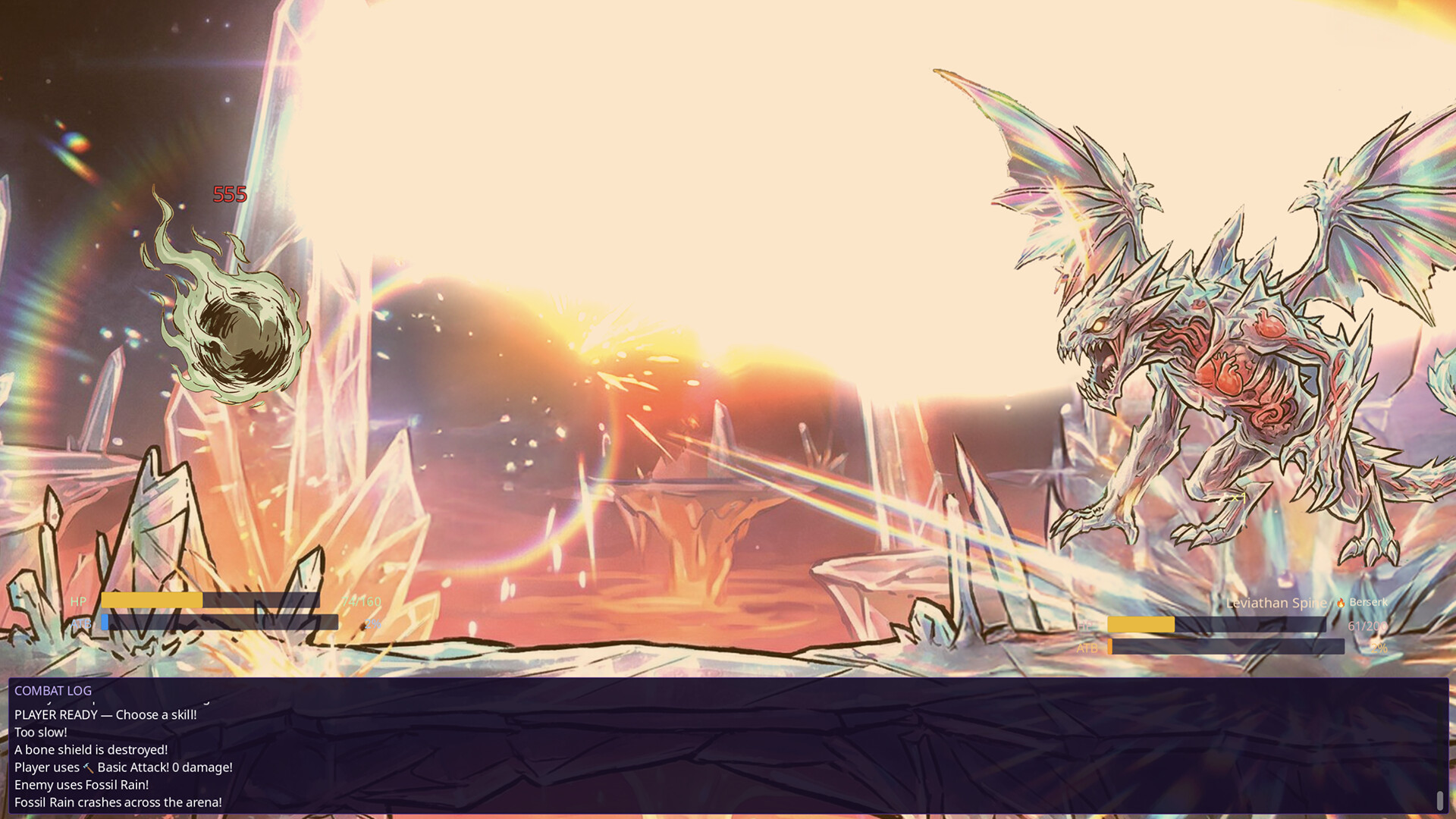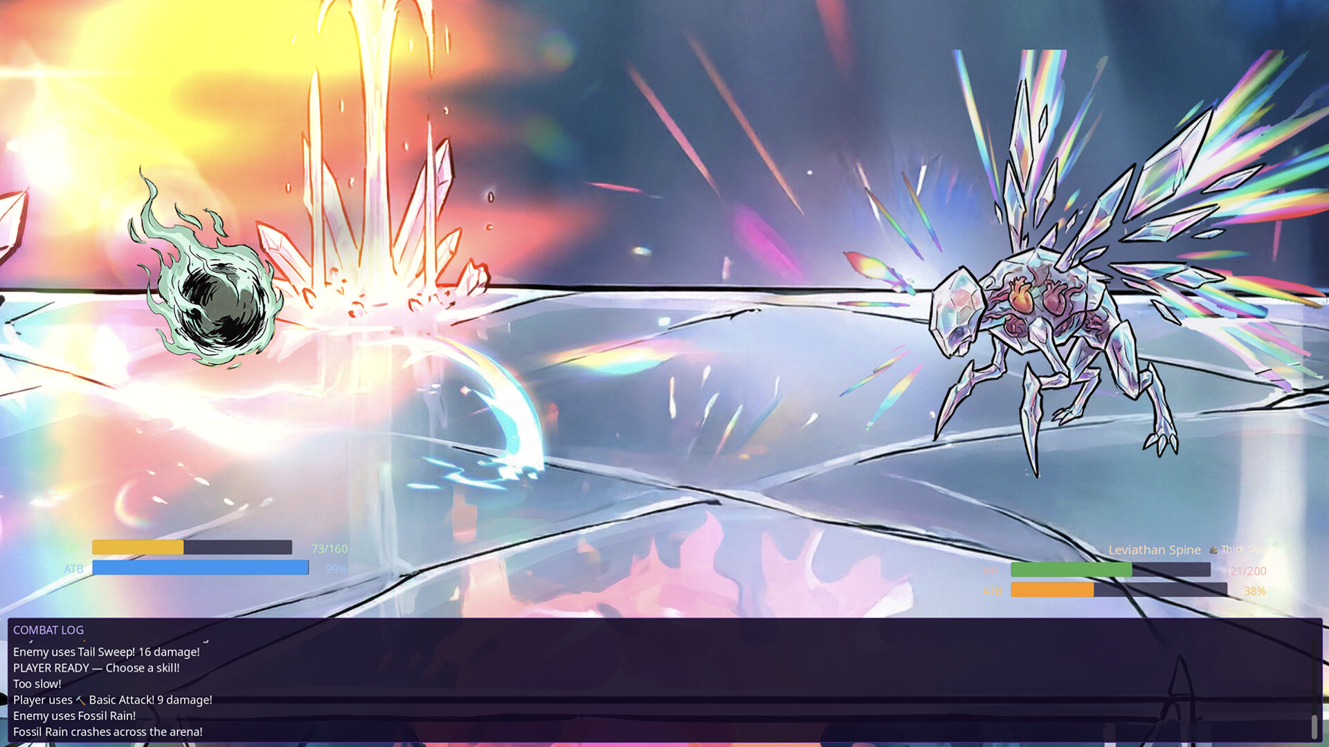 Fights are fast, tense, and never boring. Both creatures' ATB bars fill in real time — when yours fills, you get 3 seconds to pick from 3 random skills drawn from your equipped parts. Miss the window? You throw a basic punch.