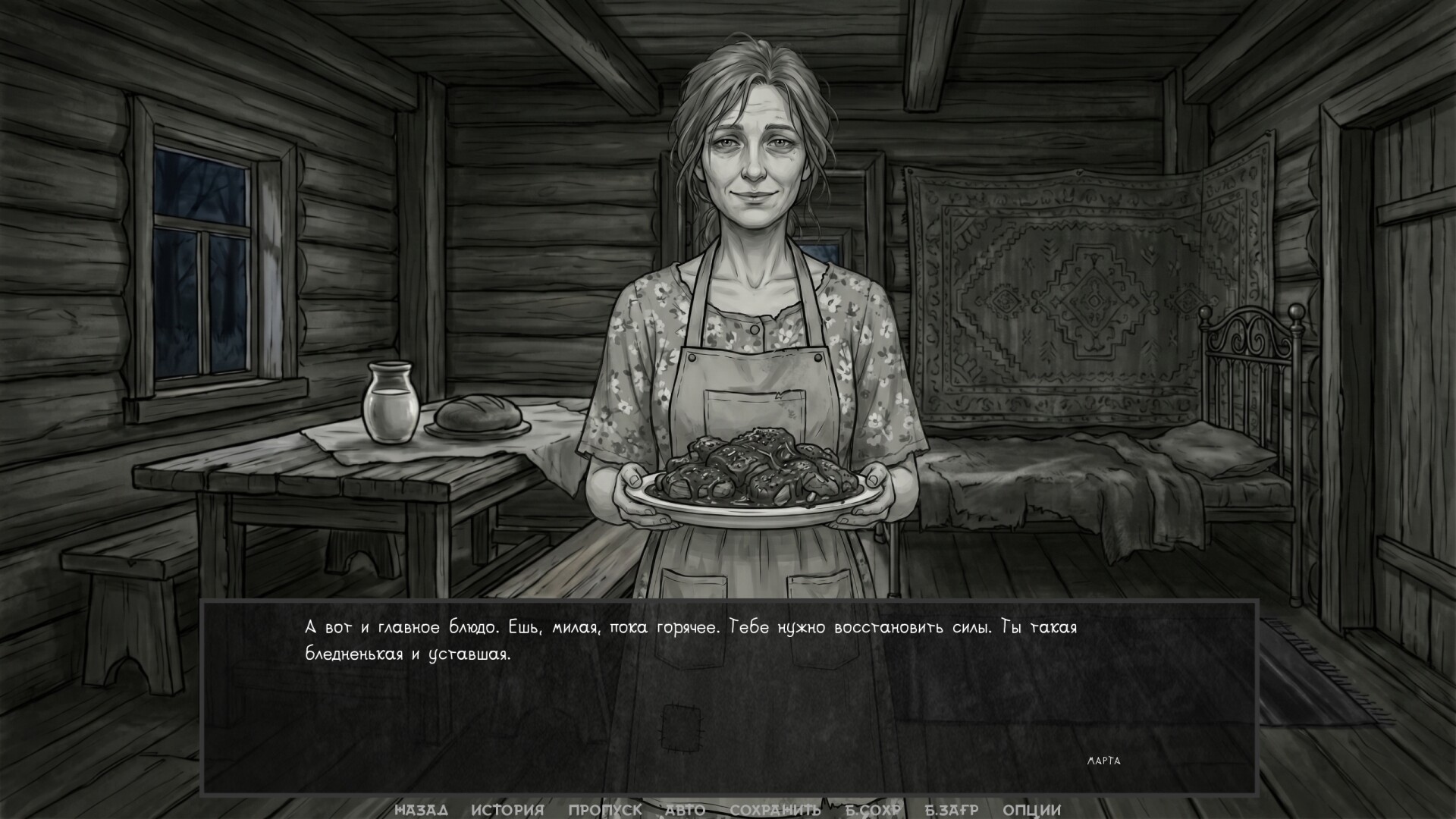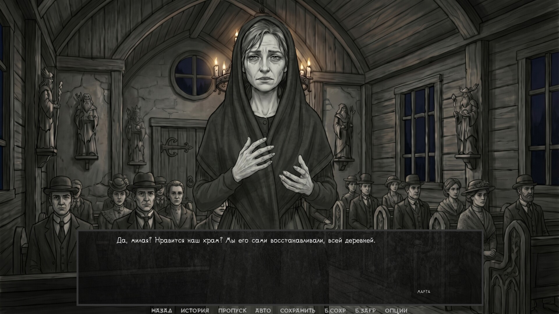 Atmospheric horror. Terror is born from silence, fog, strange glances, and the gradual realization: you are no one here, you are alone, and no one will come.