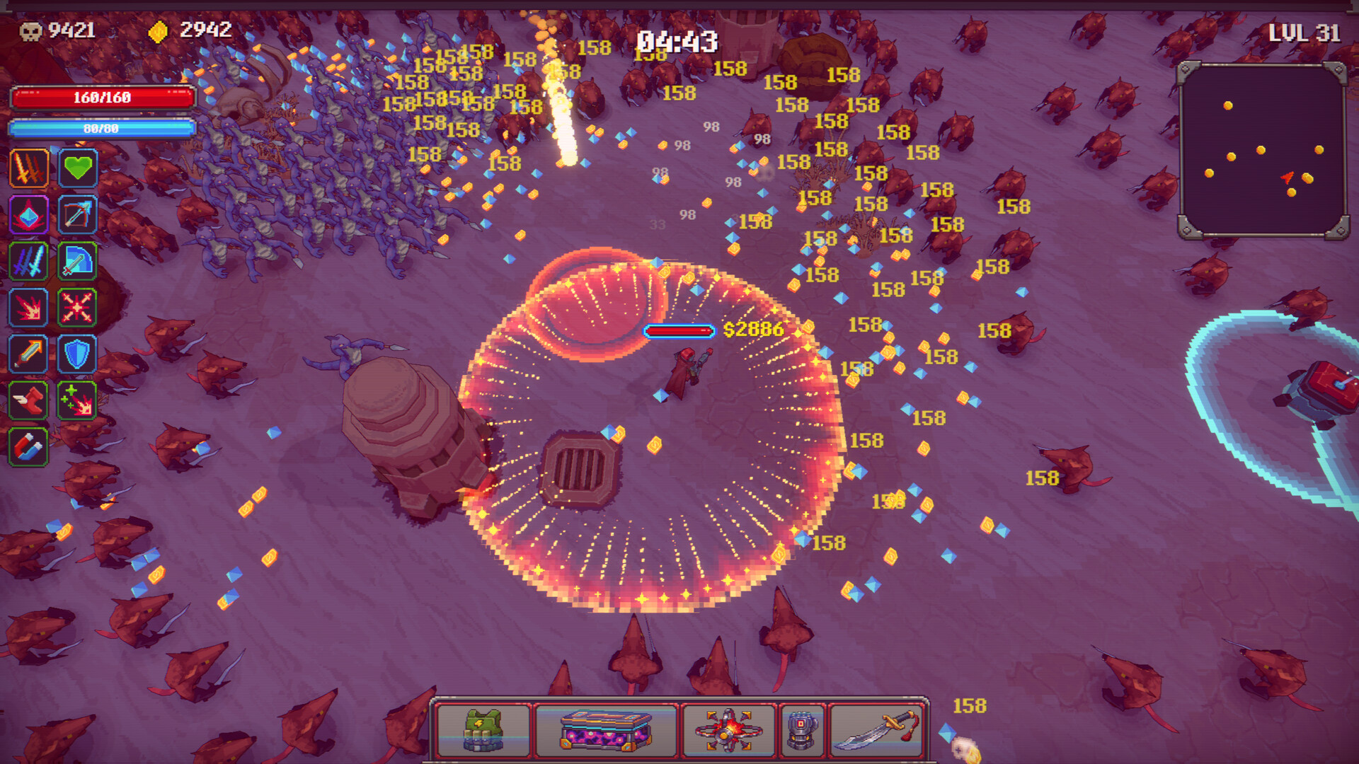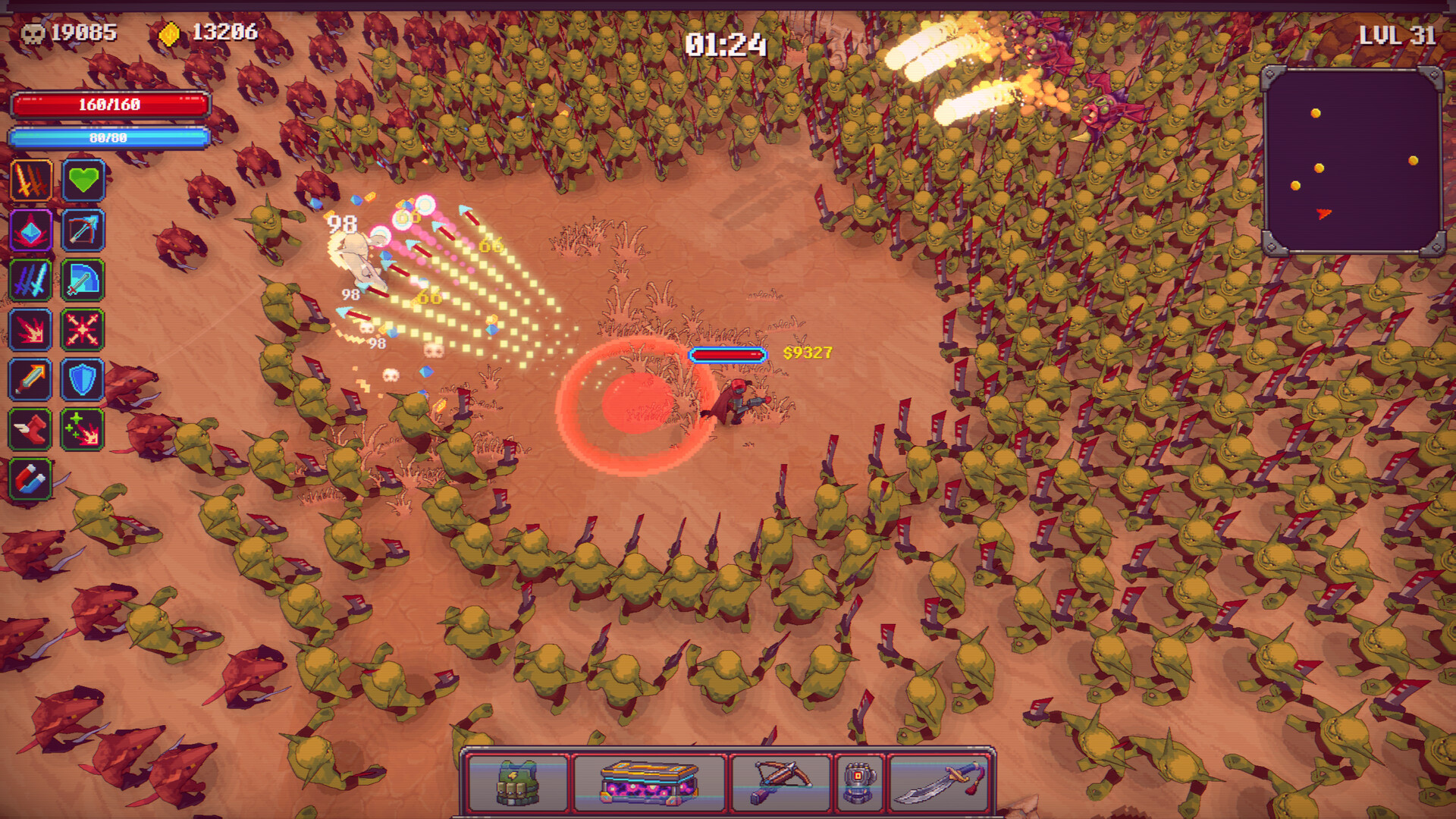 Super Galaxy Gladiator is a fast-paced survivor roguelite. Face relentless hordes of creatures in a brutal arena built for champions. Level up, choose perks, and craft your build. But mastery of your inventory is what truly sets you apart. How far can you make it?