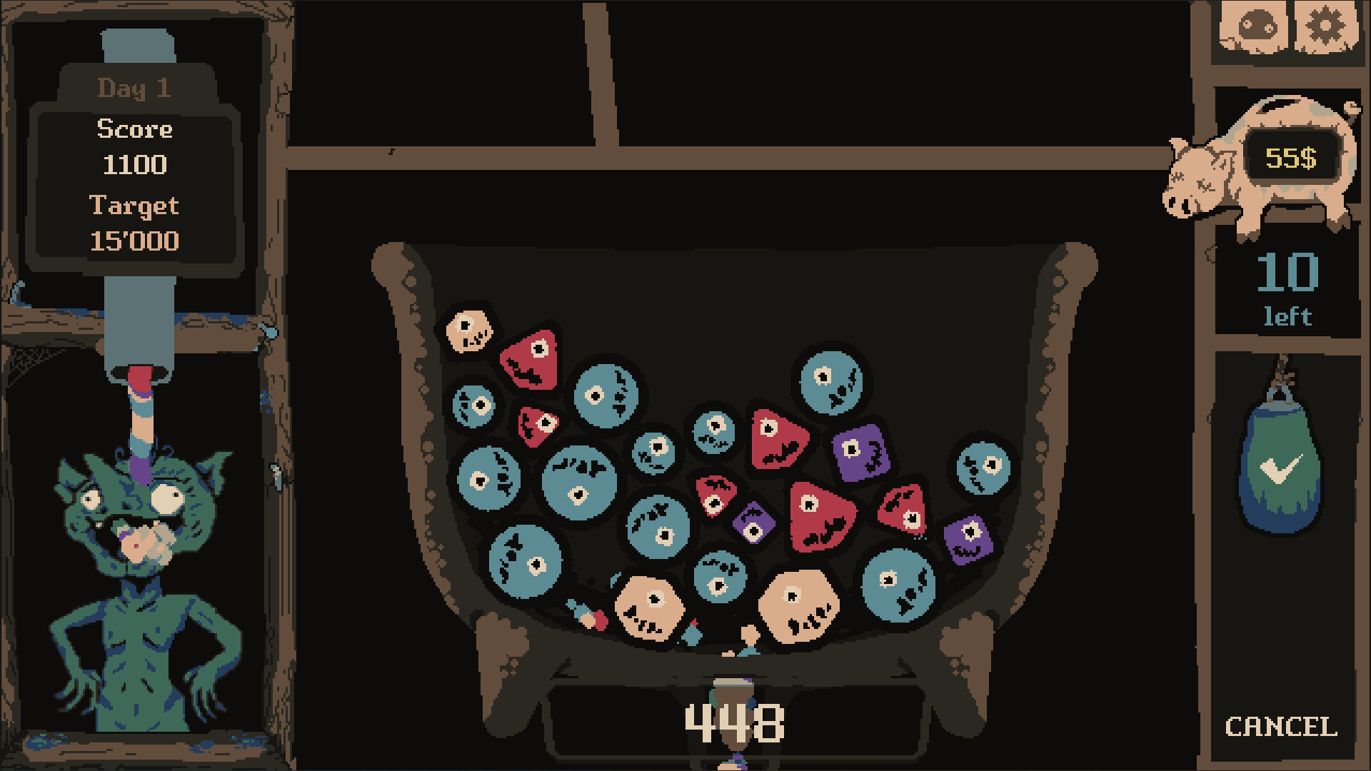 Decorate your kitchen with weird items that will boost your score, mess with how slimes behave or create odd interactions you didn’t expect. Stack enough of them and things start to get out of hand in a good way. Every run ends up feeling a bit different depending on what you find.