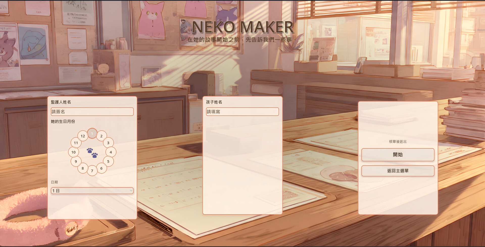 NEKO MAKER는 육성 시뮬레이션 게임입니다. 당신은 보호자로서 고양이 소녀의 완전한 12년 성장 과정을 함께합니다——여섯 살의 순진한 아이에서 열여덟 살에 자신의 길을 찾은 청년으로.