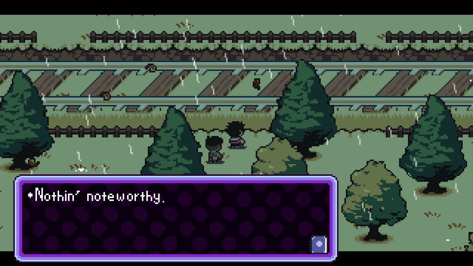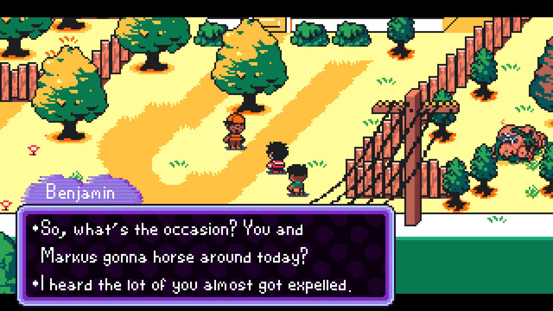 Pixel-art environments and characters reminiscent of older games designed with both modern monitors and CRT displays in-mind.