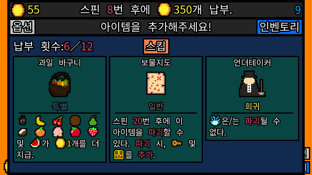 집주인이 너무해(Luck be a Landlord)는 슬롯머신을 사용해 집세를 벌고 자본주의에 맞서는 로그라이크 덱 빌더 게임입니다. 이 게임은 현금이나 도박 또는 소액 결제를 포함하고 있지 않습니다.