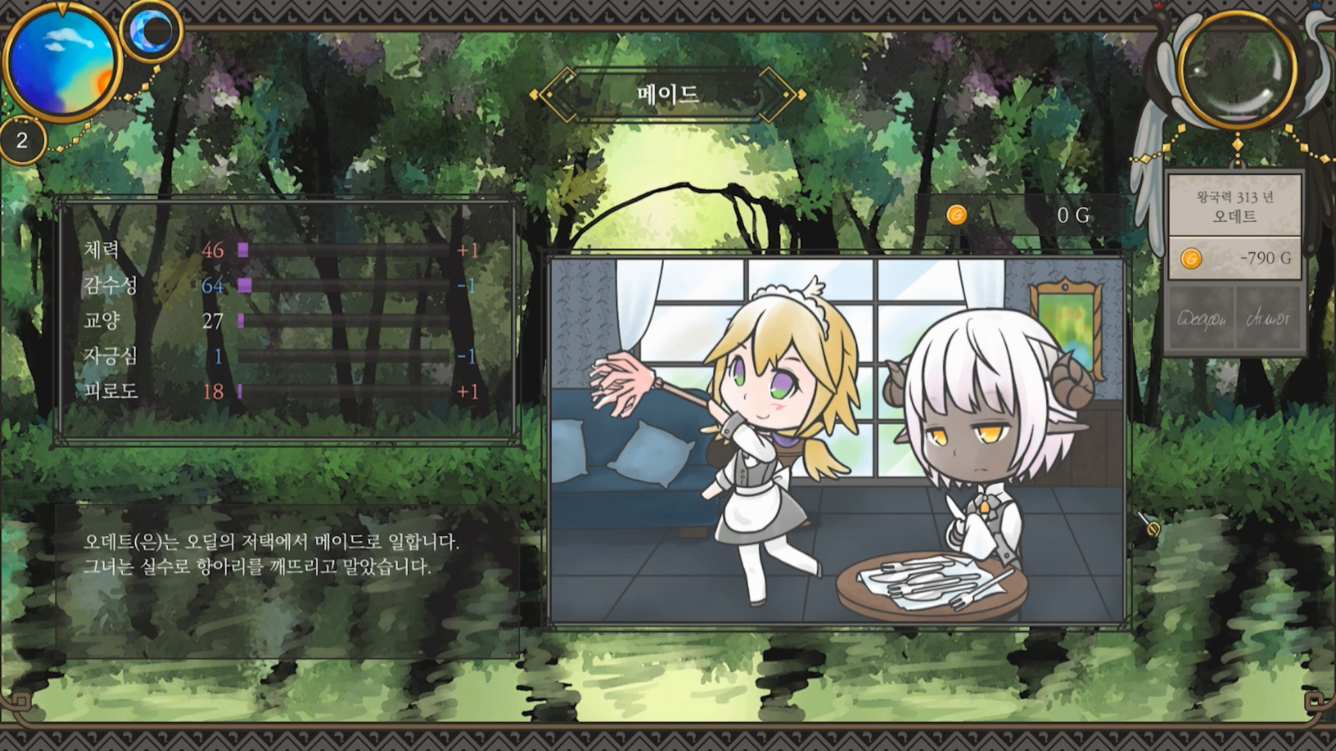 기간을 채우는 것이 아닌, 일정 량의 마나를 채우면 딸이 성장하는 시스템입니다. 따라서 엔딩을 빨리 보고 싶으면 주어진 기간과 관계 없이, 원하는 시기에 마나를 채워버리면 됩니다. 그래서 낮은 능력치가 요구되는 간단한 엔딩은 금방 볼 수 있고, 더 공을 들여야 하는 고급 엔딩은 시간이 더 걸리는 식으로