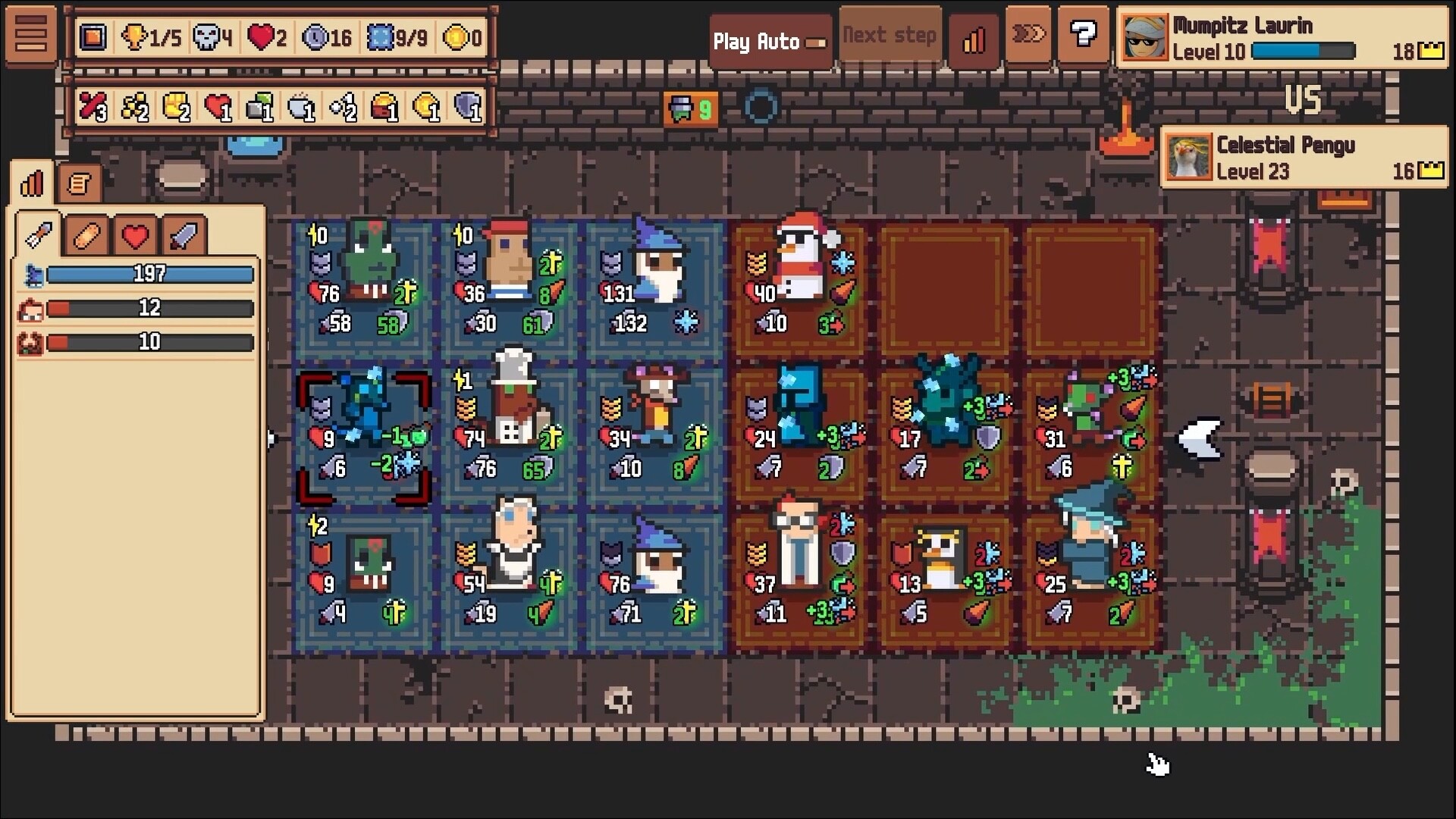 전투가 시작되면, 캐릭터들은 자동으로 전투를 벌이며 스킬을 사용합니다. 그들의 위치는 공격 순서와 스킬 사용 방식에 영향을 미칩니다. 방어력, 중독, 출혈과 같은 상태 이상 효과는 전투를 한층 더 깊이 있게 만듭니다.