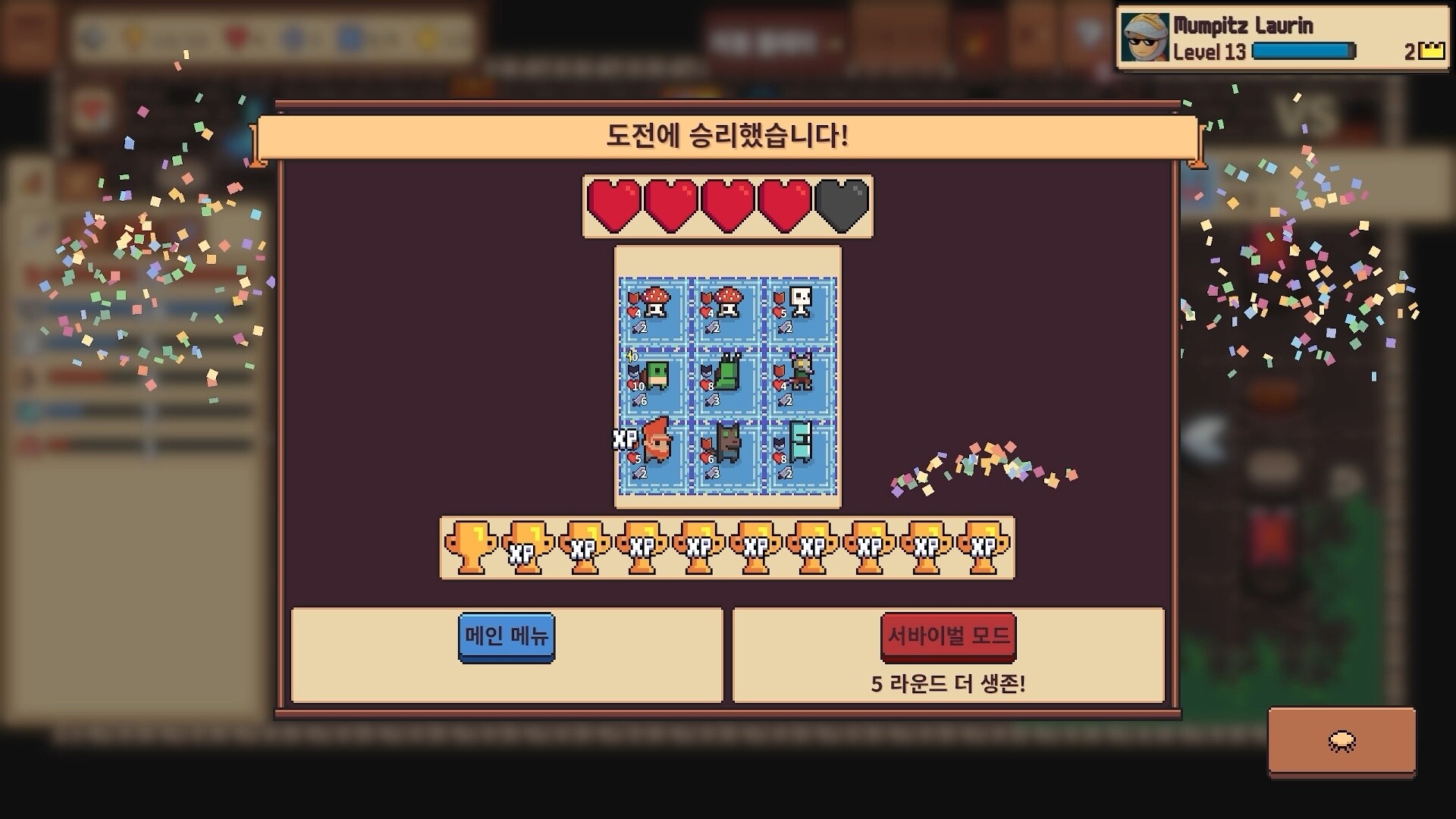 전투에서 승리하면 트로피를 얻을 수 있습니다! 이 트로피를 사용해 새로운 캐릭터를 잠금 해제하고, 커스텀 덱에 추가해 보세요. 예기치 못한 조합을 찾아내고, 나만의 전략을 완성하세요. 다른 플레이어와 덱을 공유하고, 함께 ‘최강 덱’을 연구해 보세요!