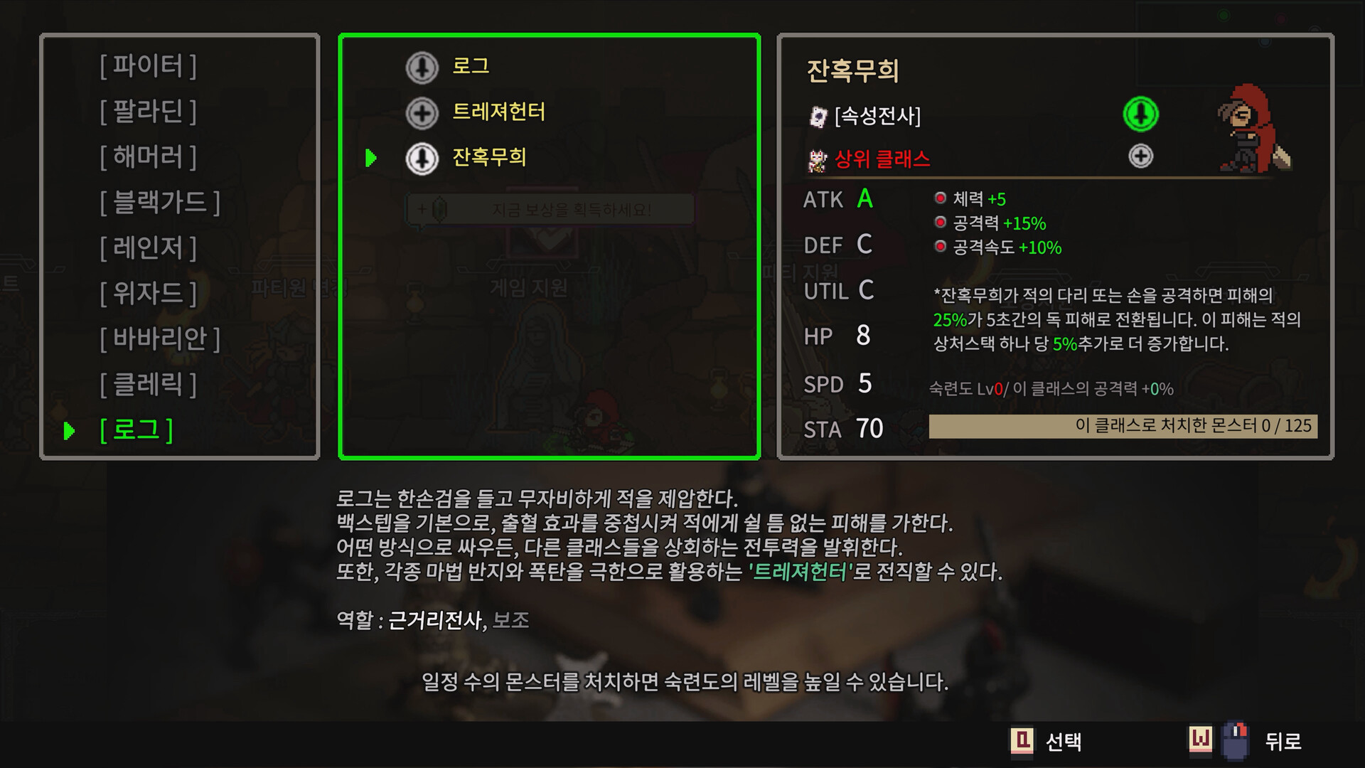 9개의 클래스 중 4명의 캐릭터를 선택해 파티를 만들게 됩니다.