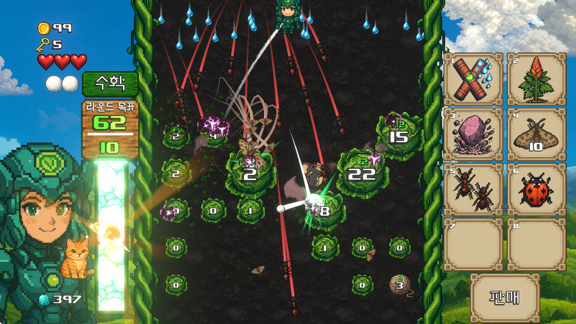양배추를 톡톡 때리는 로그라이크! 다양한 아이템으로 놀라운 빌드를 만들고, 강력한 무기를 휘두르며, 펫으로 게임을 완전히 바꾸고, 환상적인 보스와 싸우는 등 즐길 거리가 가득합니다!