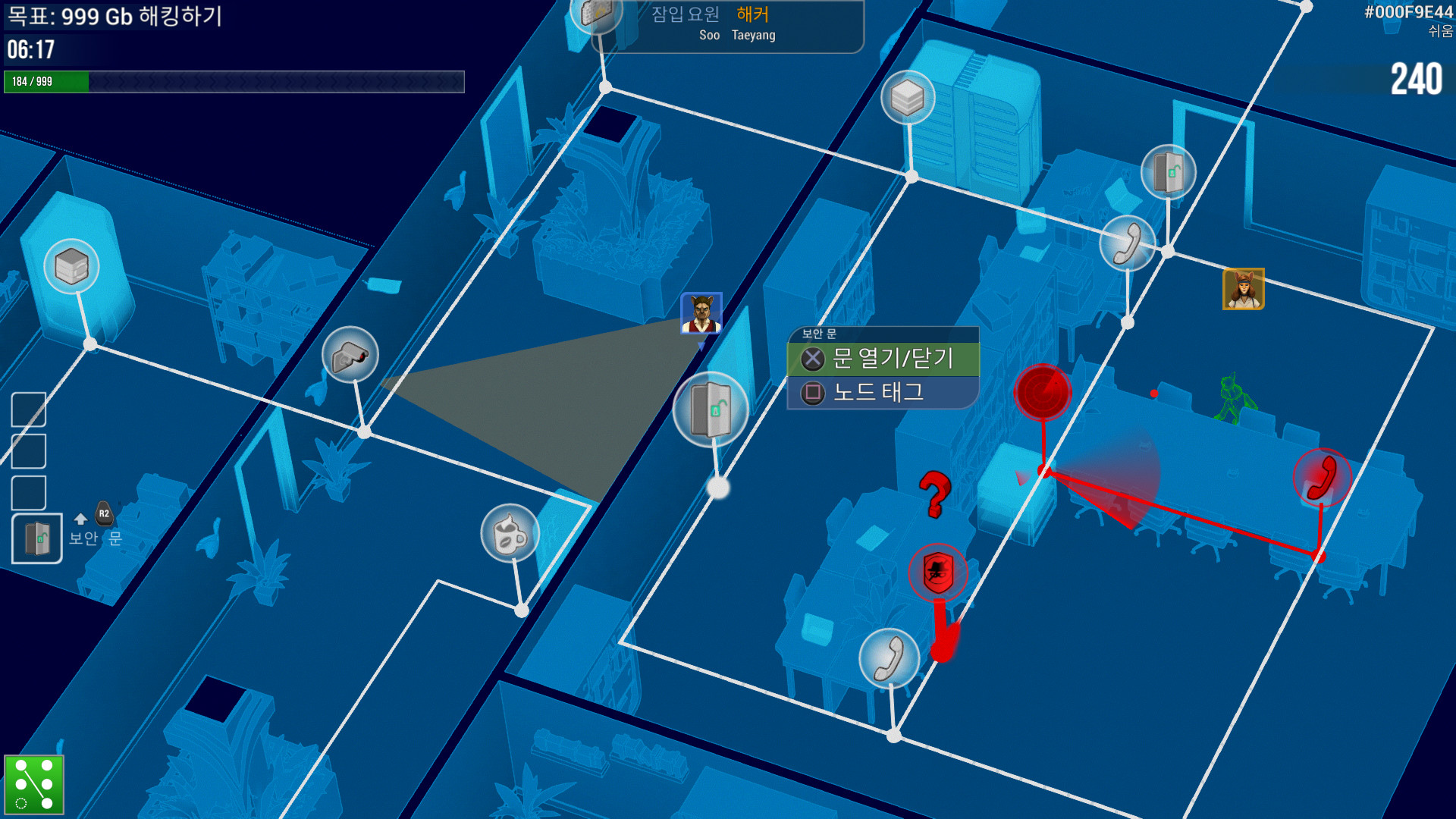 - 또는 해커가 되어 같은 레벨을 완전히 새로운 시점으로 플레이하세요. 세계를 홀로그램 방식의 설계도로 조감하여 가상의 네트워크를 탐험하고 카메라, 문, 전화기, 커피 기계까지 모두 조종해보세요...