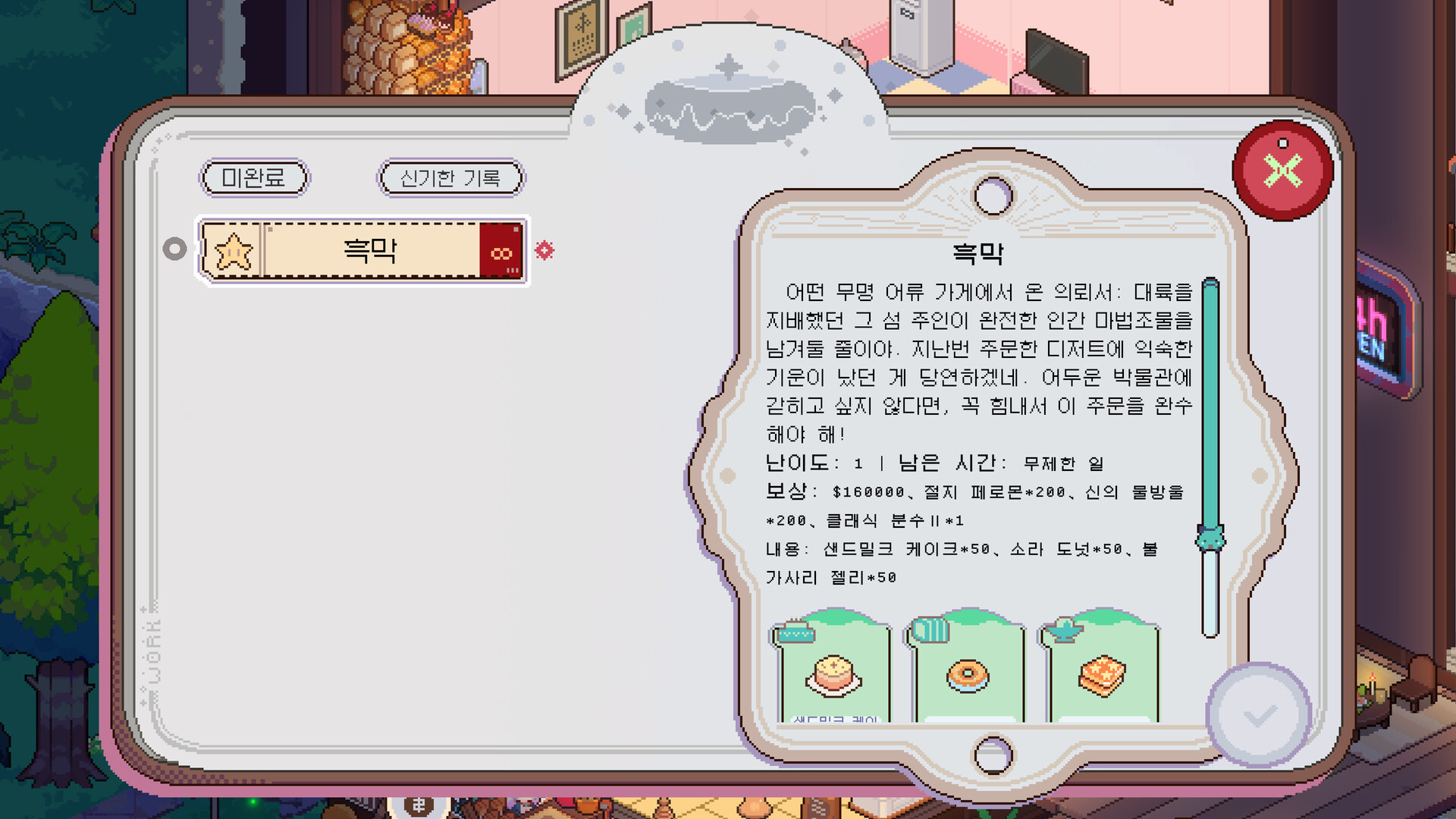 <신기한 베이킹과 집꾸미기>는 편안하게 즐길 수 있는 방치형 경영 시뮬레이션 게임입니다. 베이킹 공방에서 신비한 수산물과 마법 작물을 조합해 수백 가지 맛있는 음식을 만들어보세요. 농사, 낚시, 베이킹 모두 복잡한 조작 없이 도구와 재료를 선택하고 담당 직원을 지정하기만 하면, 시간이 흐르며 음식 생산이 자동화됩니다!