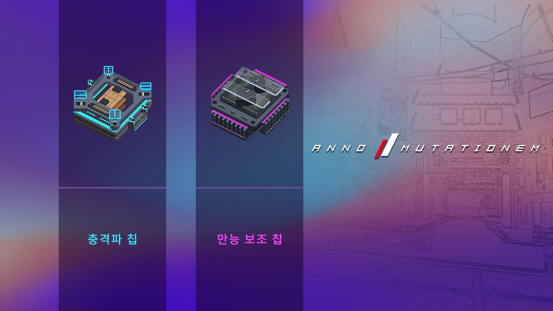 무기 강화 칩 2개: 공격용 고주파 칩과 분석 보조 칩