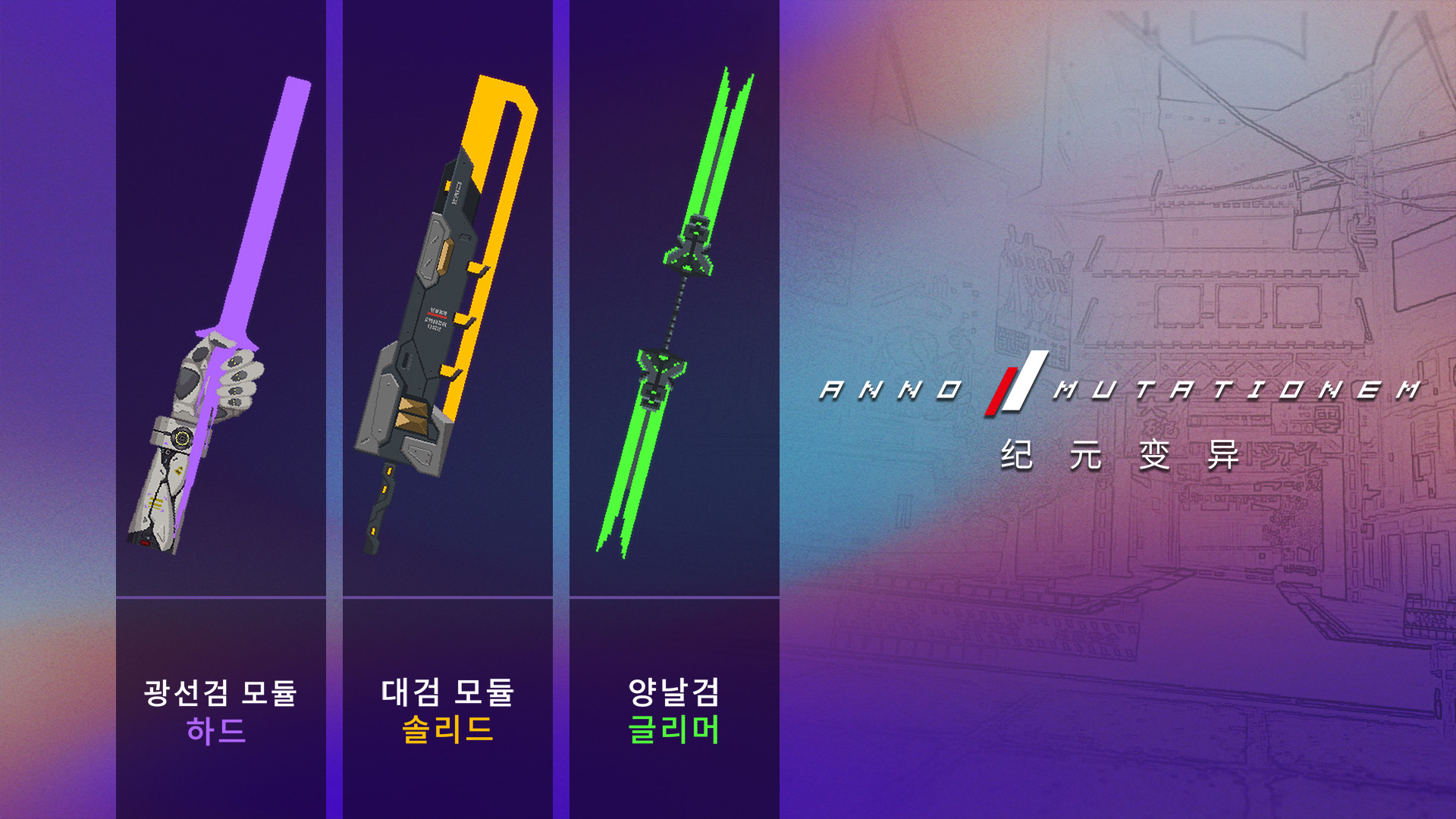 특수 채광 무기 3종: [광선검 모듈: 하드], [대검 모듈: 솔리드], [양날검, 글리머]