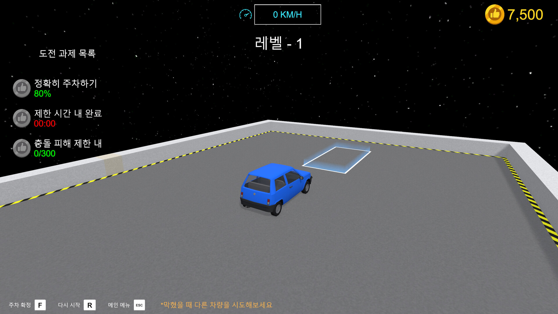 조작은 매우 간단합니다. 네 개의 방향키(전진, 후진, 좌회전, 우회전)와 주차 확인 버튼 하나면 충분합니다.